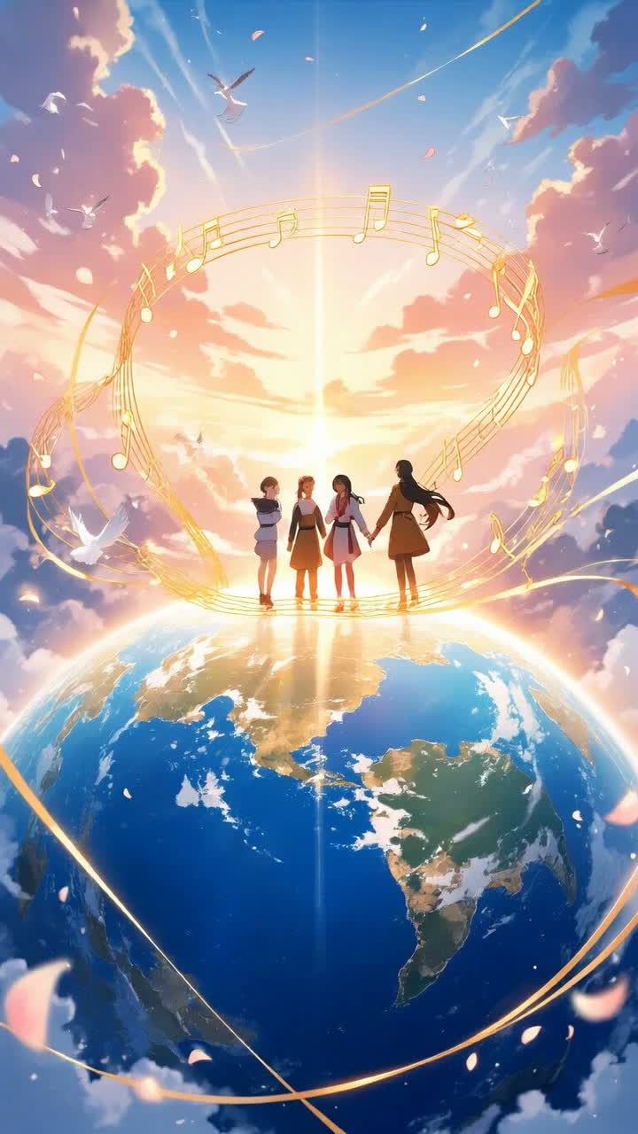 A chill, low‑tempo piano ballad with soft strings and symphonic warmth a peaceful, emotional anthem about unity, healing, and hope, Child Voice, clear vocal, and sound