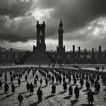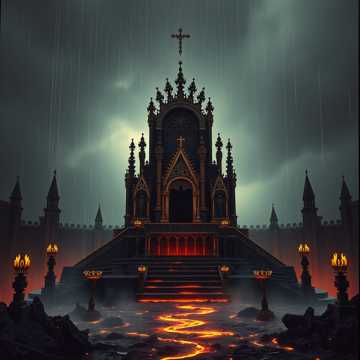 Thrash metal ultra-agressive, black symphonic, epic dark orchestral, majestic brutal, huge soaring choirs, dark, D minor, fast technical riffs, punchy and melancholic, apocalyptic atmosphere, deep voice guttural evoking ancient rituals and cosmic despair, screams and growls, ‑happy, ‑pop, ‑djent, ‑mainstream, ‑radio-friendly, ‑commercial, ‑clean voice