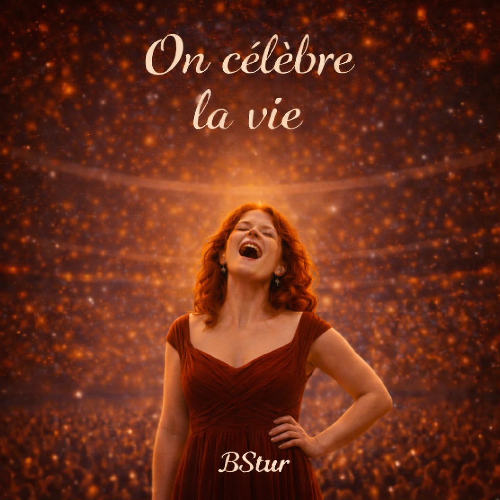 Grand electro-swing jazz French chanson, 104 BPM, extremely lively and danceable, Female vocal playful, joyful and charismatic, Manouche rhythm guitar, upright bass bounce, swing-pop drums with claps, Powerful big band brass section (trumpets, trombones, saxophones) delivering big brass hits and explosive brass breaks in the chorus and transitions, Festive Paris street atmosphere, cinematic celebration energy, joyful swing groove, playful scat moments, vibrant and uplifting chanson style