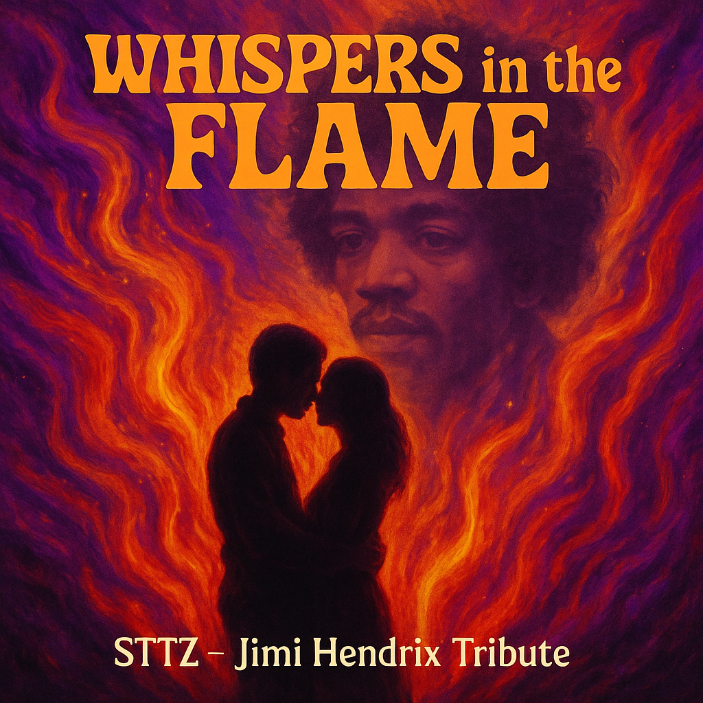 Psychedelic Blues-Rock with a late-60s vibe, Fuzz-drenched wah guitars, groovy basslines, raw, fiery drums, and soaring Hammond organ swells form the foundation, Male tenor vocals with a soulful, bluesy edge deliver poetic and cosmic lyrics about a legendary guitarist whose sound rose like a phoenix in fire and light, The arrangement blends spoken-sung verses with explosive choruses and an extended guitar solo centerpiece full of feedback, wah, and fuzz, The mood is fiery yet spiritual, celebrating the timeless spirit of rock’s most iconic visionaries