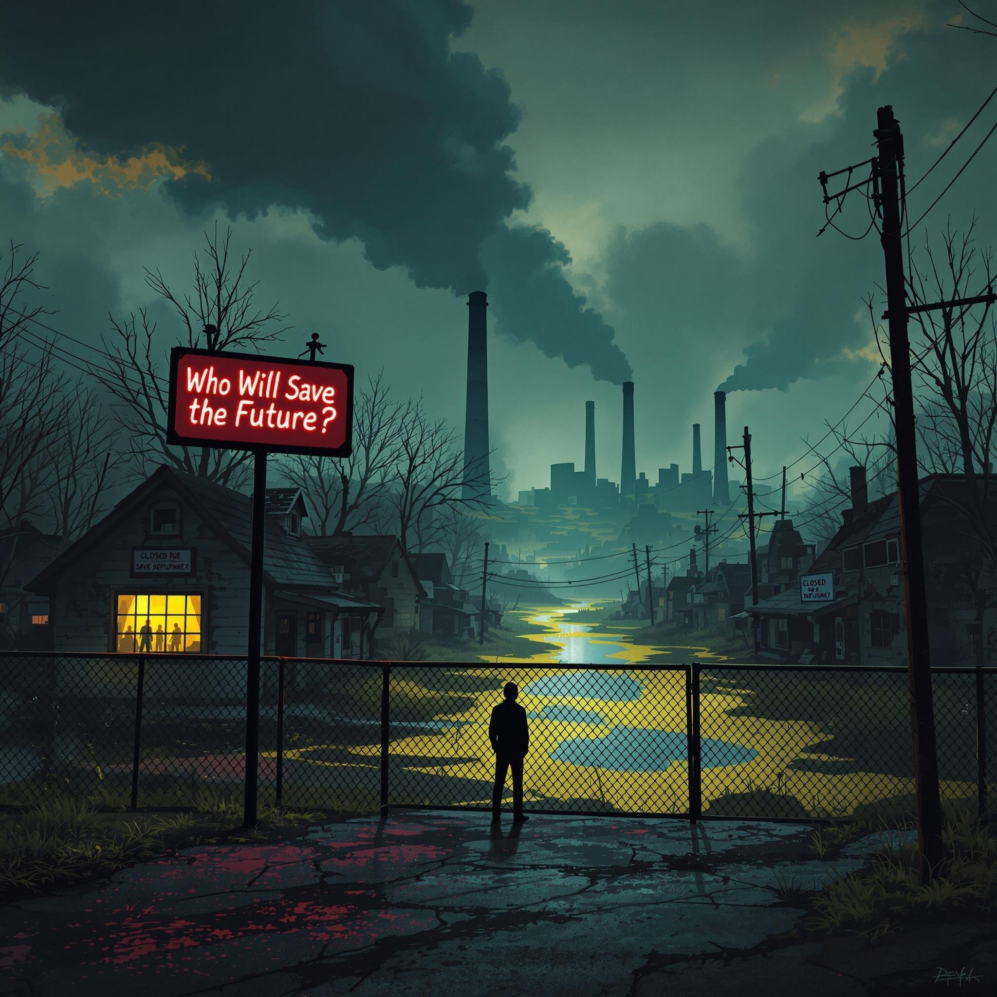 dark folk, haunted server room, digital doom, tech-noir folk, spoken-verse, industrial blues, corporate gothic, droning minimalist, neon-noir despair
