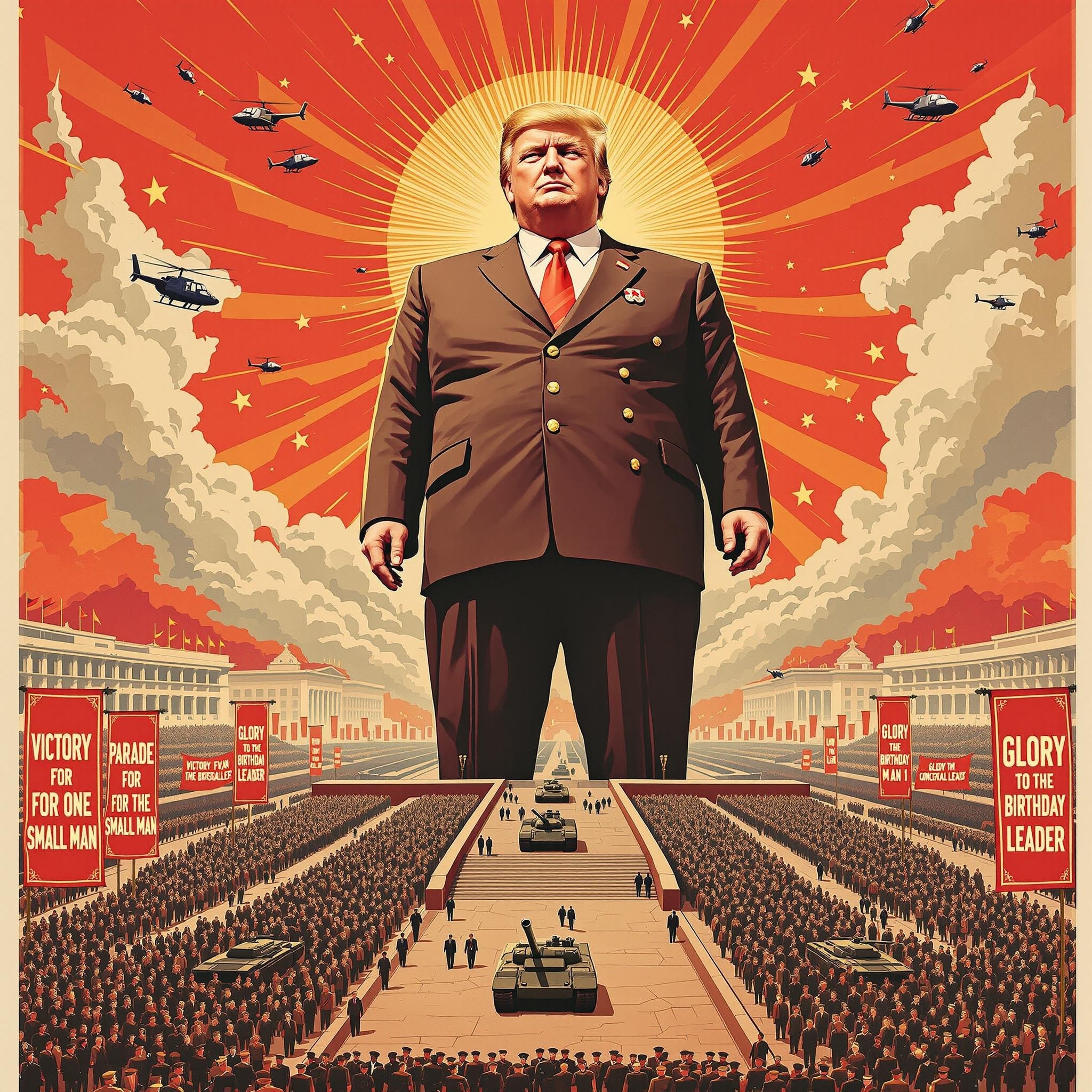 Soviet military march, North Korean propaganda orchestra, bombastic parade music, totalitarian fanfare, authoritarian brass anthem, orchestral power march, heavy percussive stomp, dark martial symphon