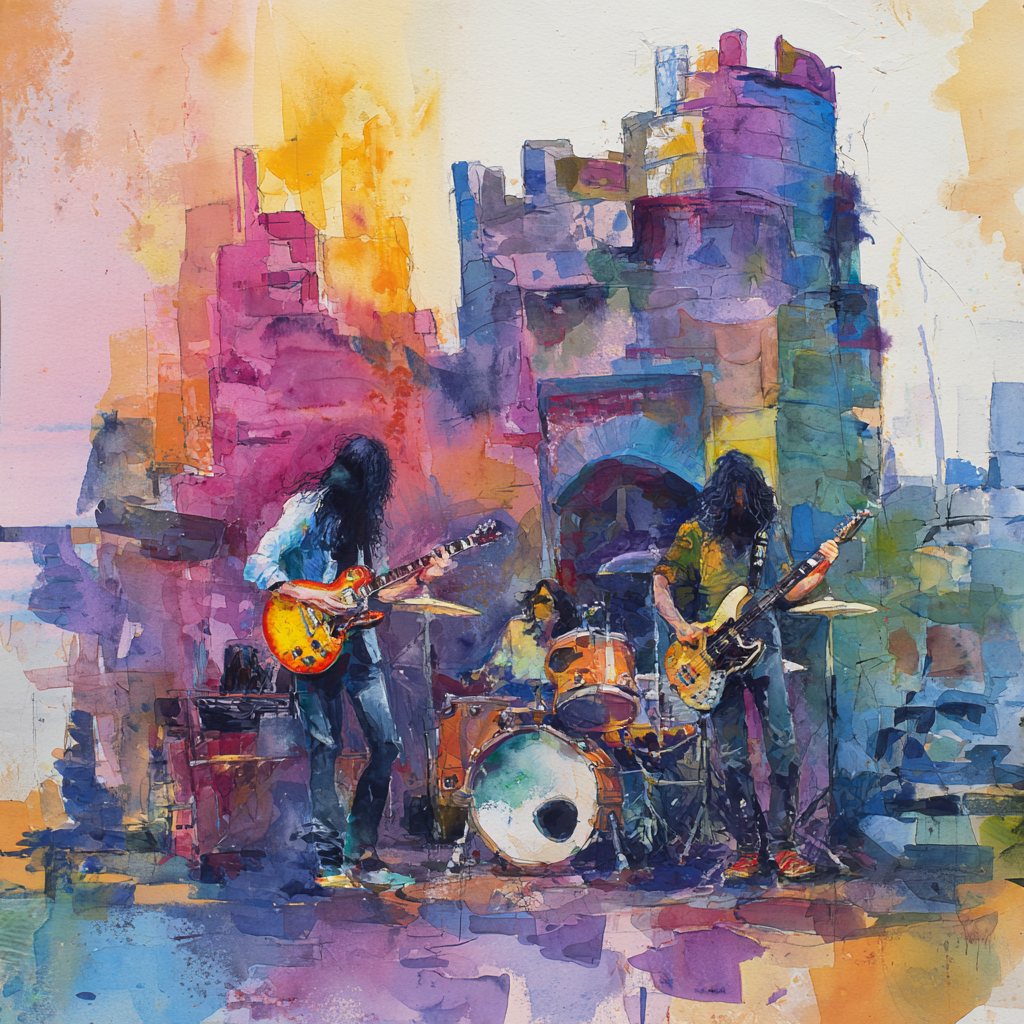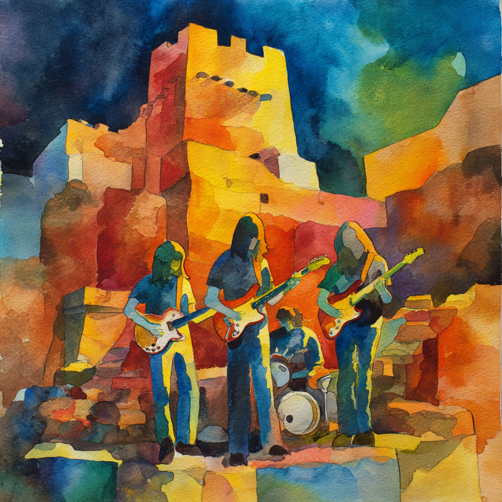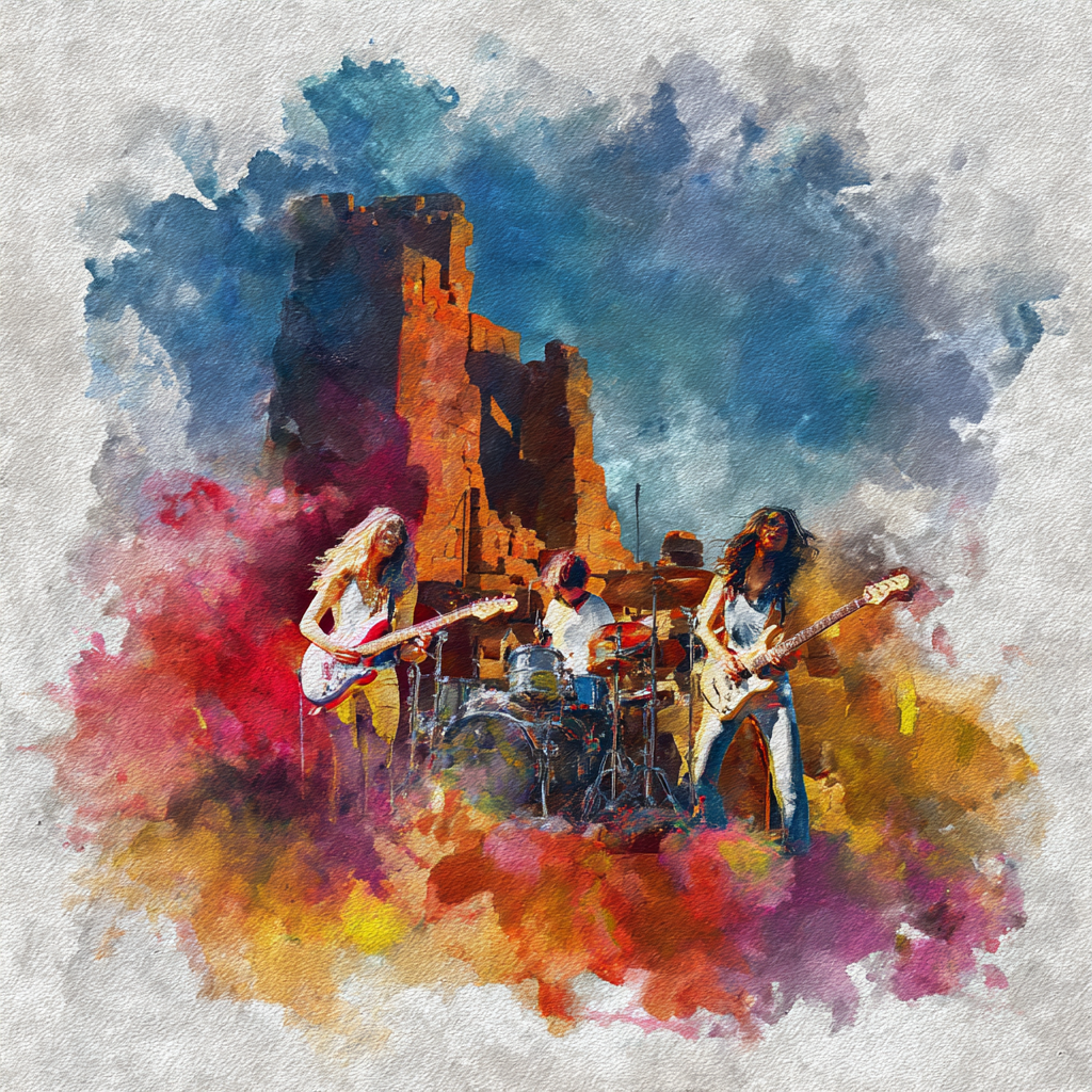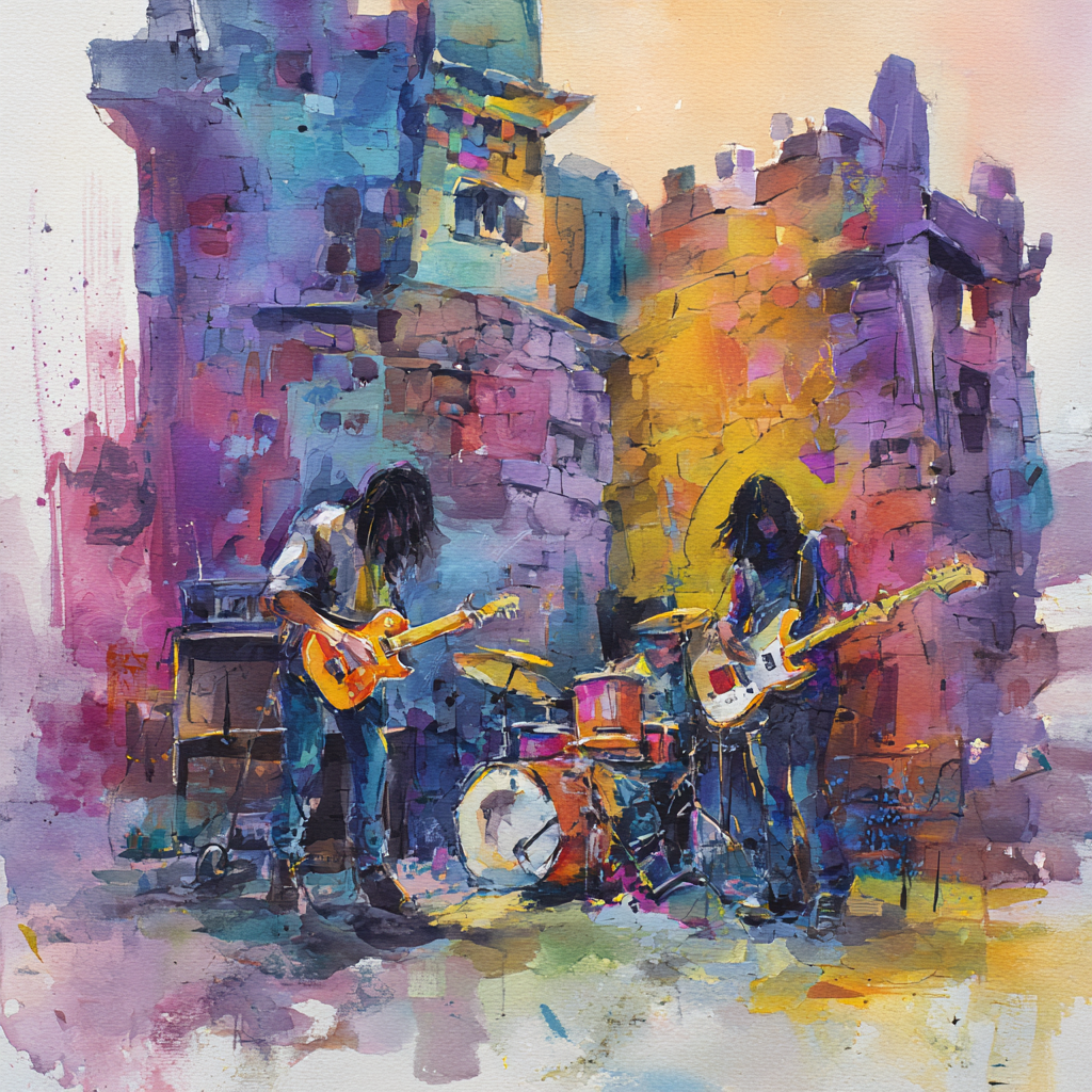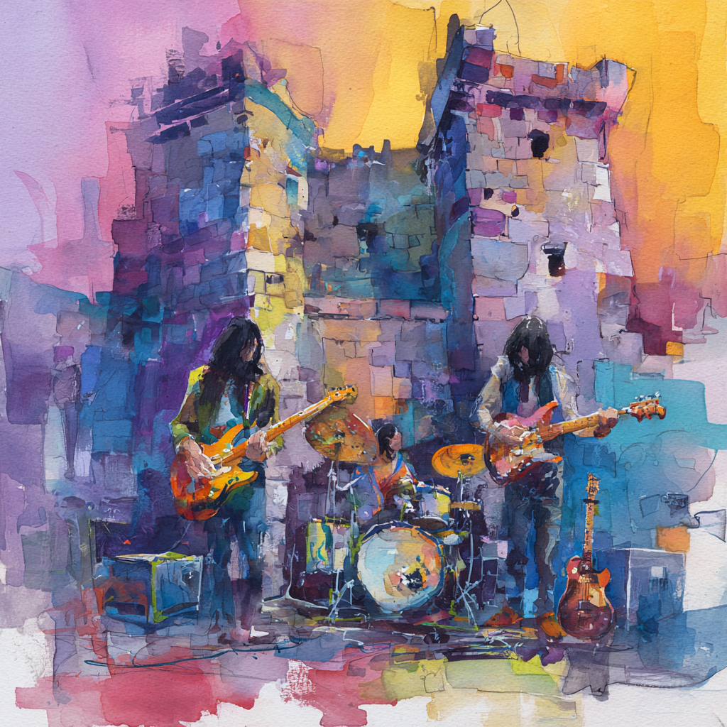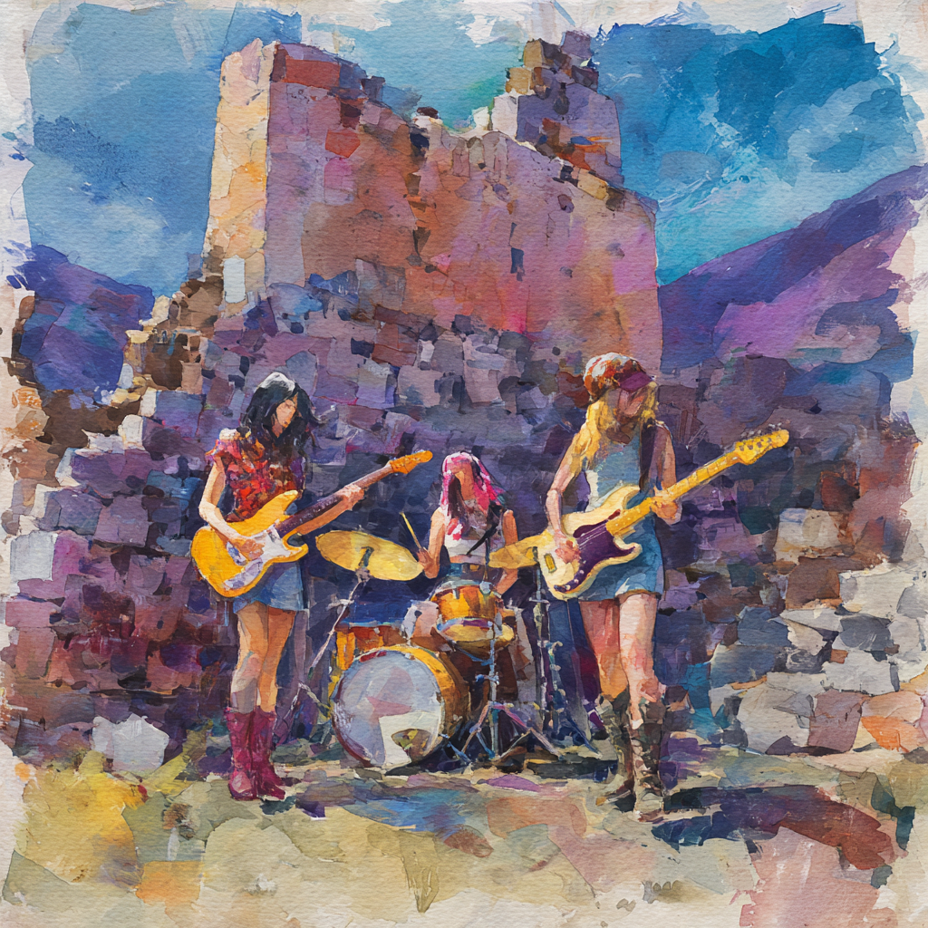 Experimental psychedelic rock, delay, distortion, noise rock, A swirling experimental psychedelic rock track begins with modulated guitars soaked in delay and heavy distortion, setting a dense, trippy atmosphere, Drums pound with unpredictable patterns, layered with bass fuzz, Noise rock elements erupt in breakdowns, blending feedback, warped synths, and chaotic textures