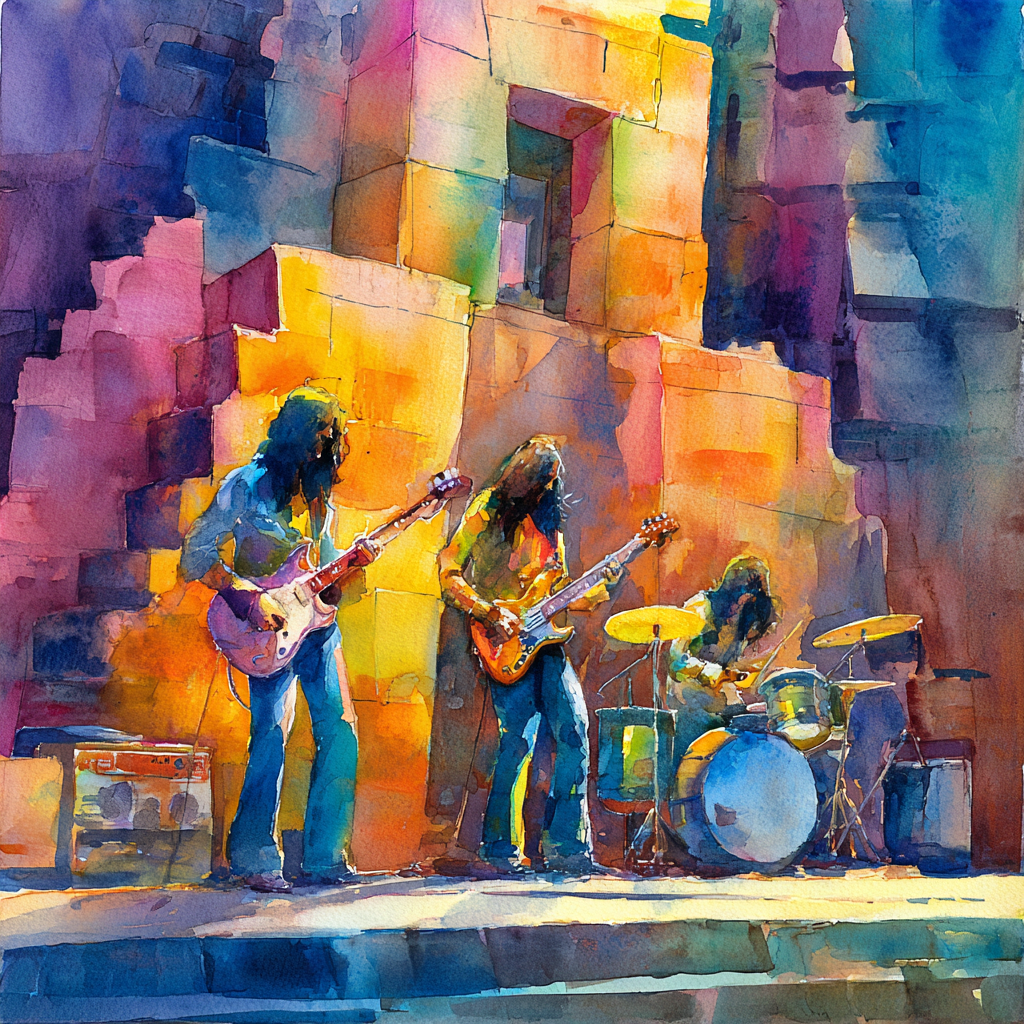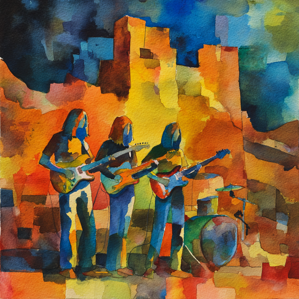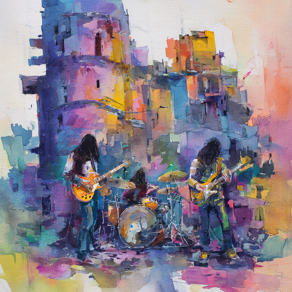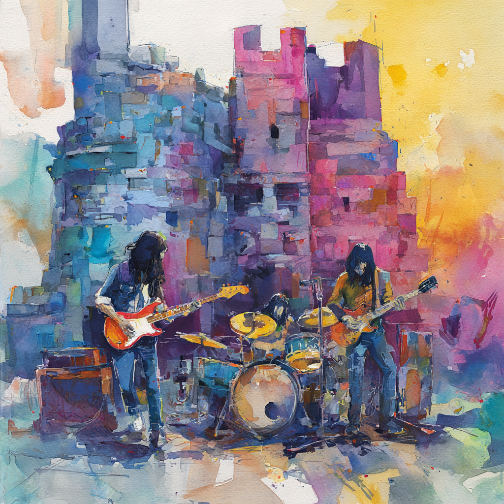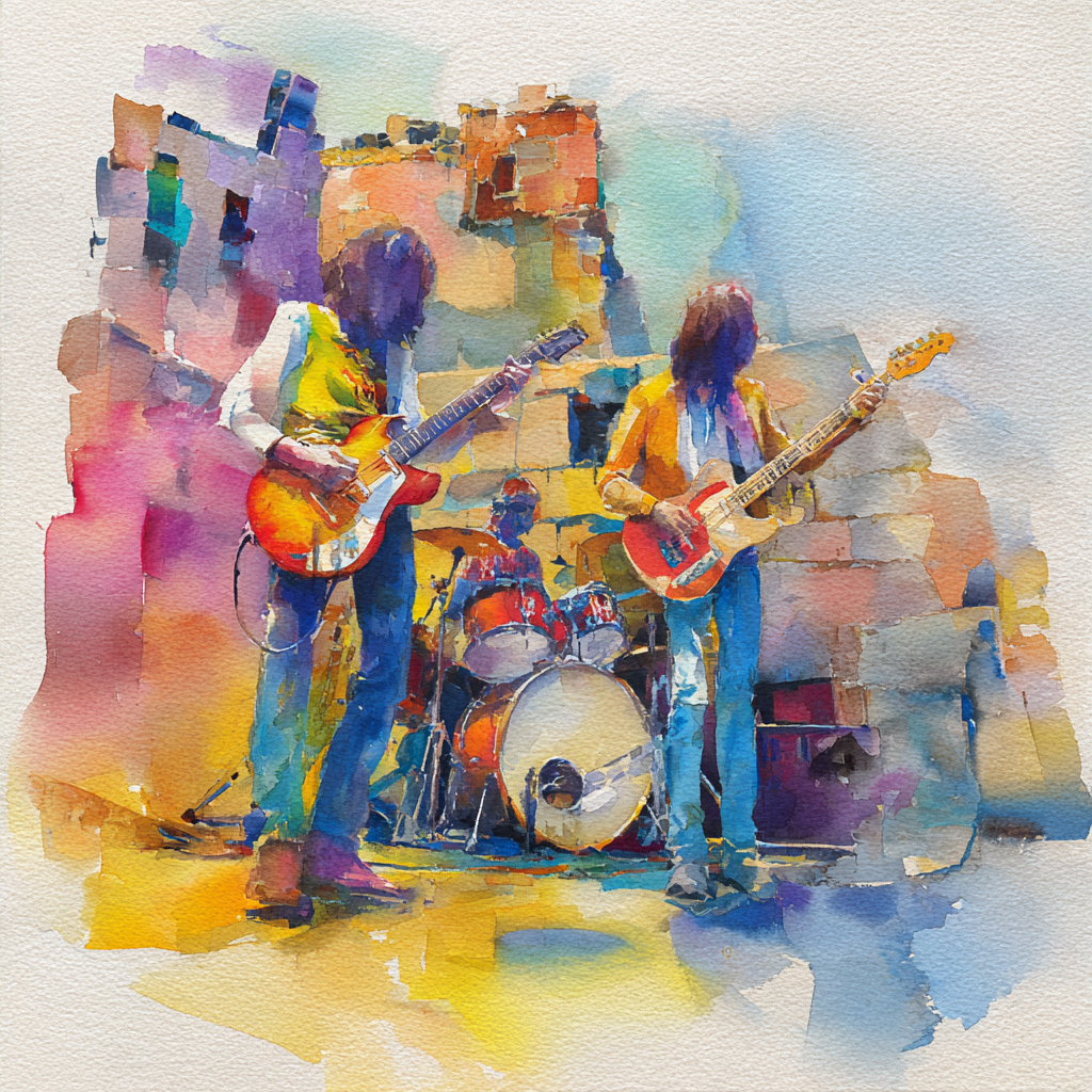 Experimental psychedelic rock, delay, distortion, noise rock, A swirling experimental psychedelic rock track begins with modulated guitars soaked in delay and heavy distortion, setting a dense, trippy atmosphere, Drums pound with unpredictable patterns, layered with bass fuzz, Noise rock elements erupt in breakdowns, blending feedback, warped synths, and chaotic textures