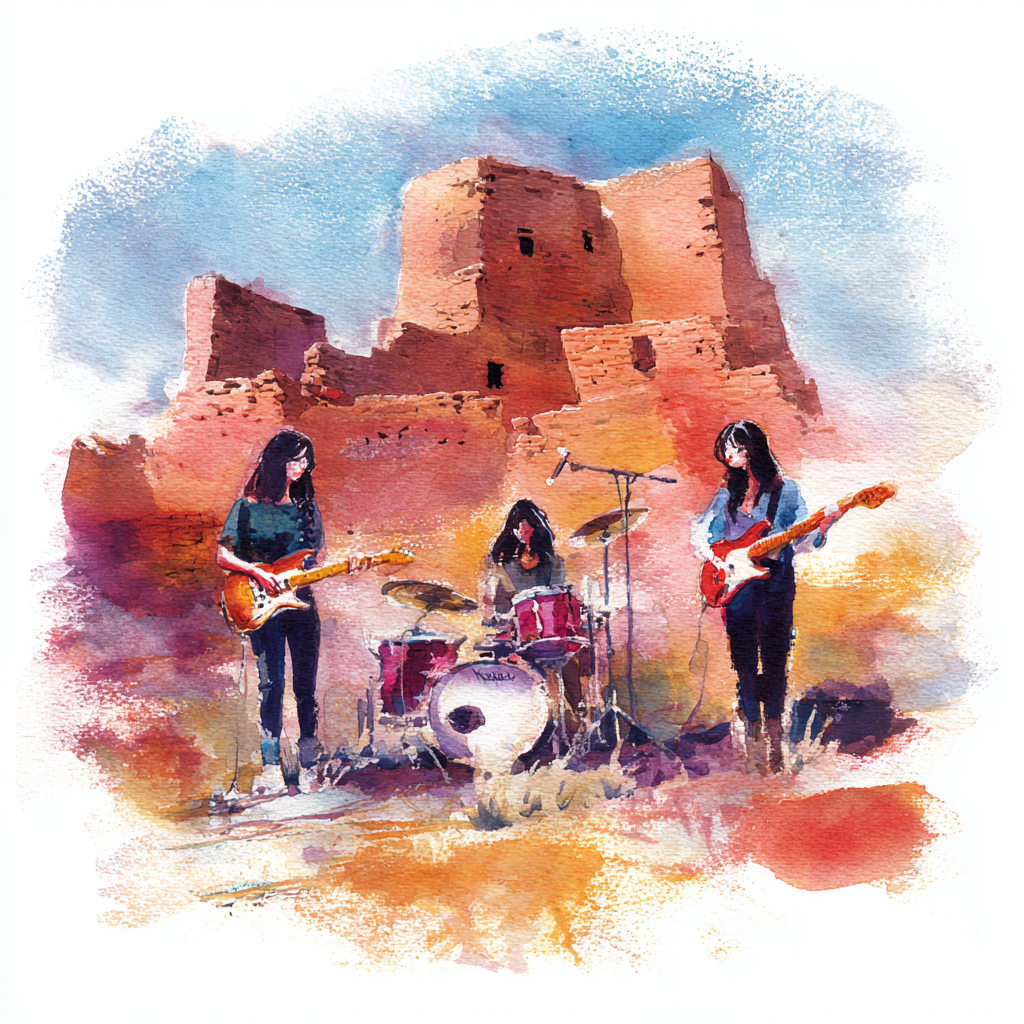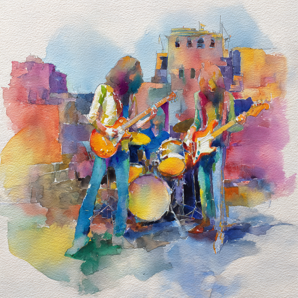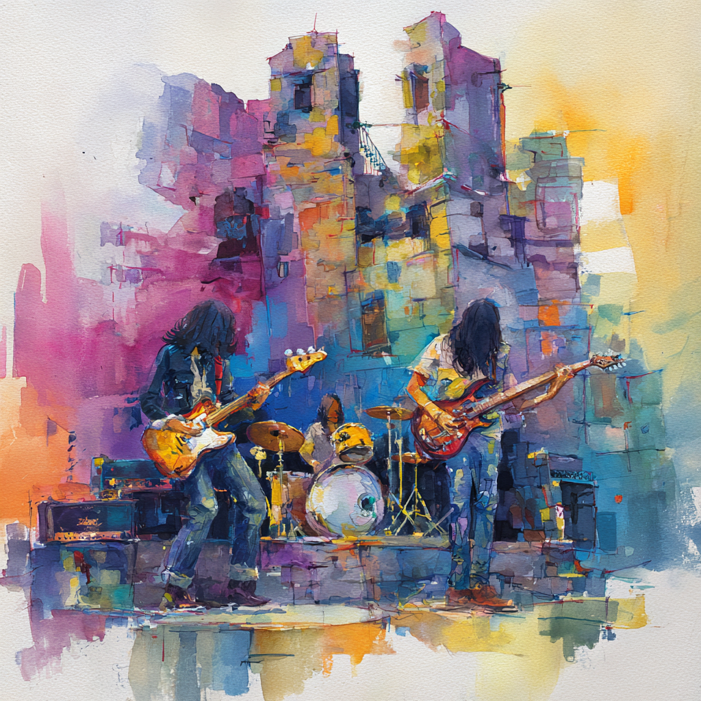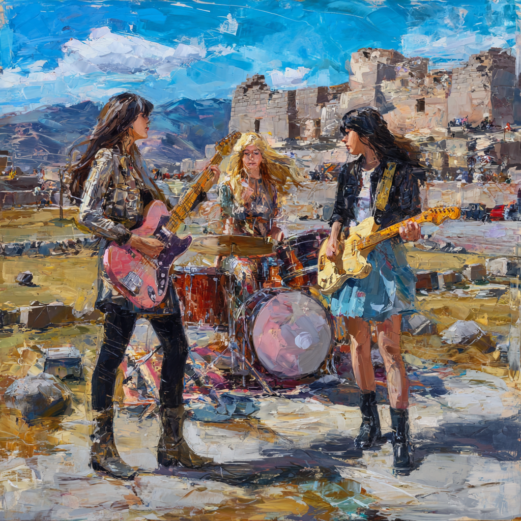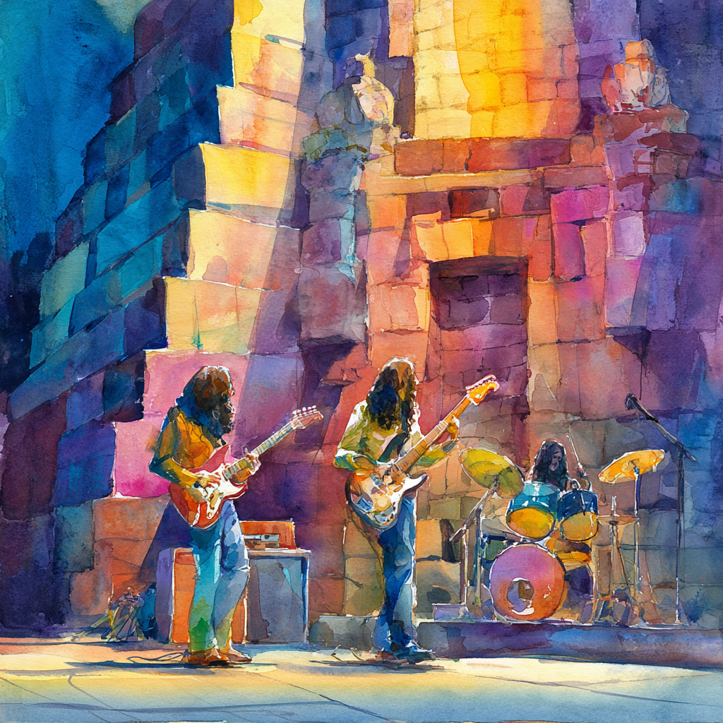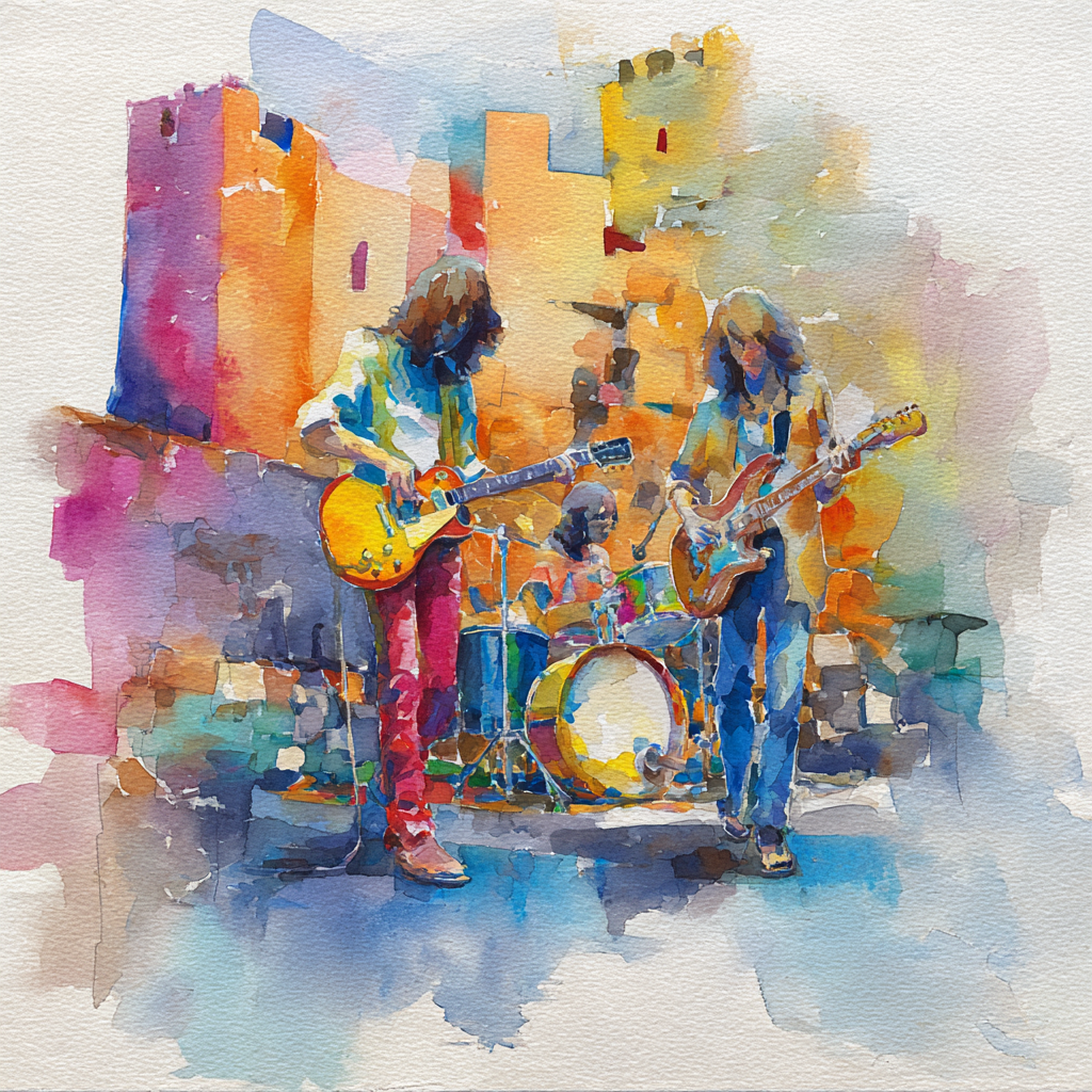 Experimental psychedelic rock, delay, distortion, noise rock, A swirling experimental psychedelic rock track begins with modulated guitars soaked in delay and heavy distortion, setting a dense, trippy atmosphere, Drums pound with unpredictable patterns, layered with bass fuzz, Noise rock elements erupt in breakdowns, blending feedback, warped synths, and chaotic textures