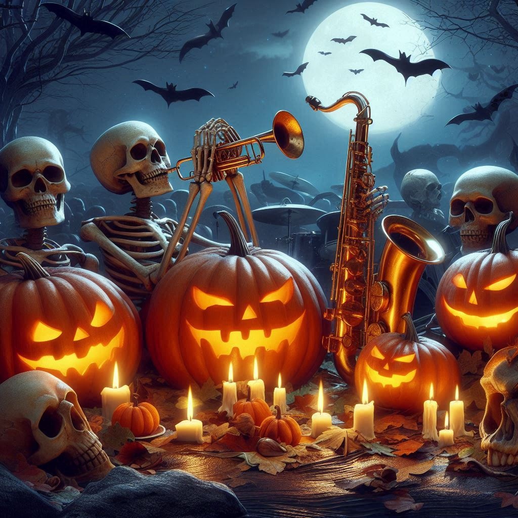 cabaret fusion, electro-swing, playful, jazzy brass, theatrical, hallowen, dramatic, upbeat