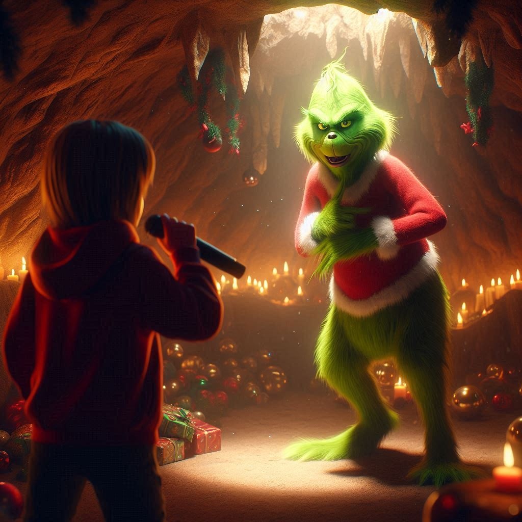 Christmas debate, Grinch, family spirit, dual voices, playful argument, holiday rap, upbeat, male vocals