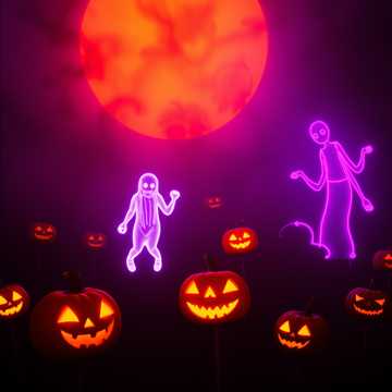EDM festival anthem, Halloween themed, energetic and spooky atmosphere, powerful build-ups and drops, pumping bass, eerie synth melodies, ghostly vocal chops, cinematic risers, fun and frightful vibe, dark playful energy, crowd chanting, 128 BPM, inspired by Tomorrowland mainstage, haunting plucks, driving kick and snare, Halloween party energy, dynamic transitions, realistic female voice, ‑no rock guitars, ‑no acoustic drums, ‑no orchestral instruments, ‑no low-quality synths, ‑no lo-fi, ‑no ambient-only sections, ‑no excessive reverb, ‑no whisper vocals