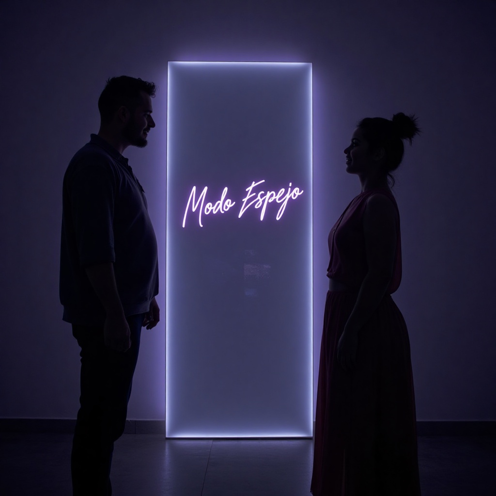 Spanish-language song titled "Modo Espejo" by Lio Navarro, A slow, introspective track with emotional male vocals and minimalistic electronic production, Soft piano loops, subtle ambient textures, layered vocal harmonies, glitch elements, and a spoken word bridge, Inspired by the feeling of disconnection in a digital world, Ends with an abstract ambient outro featuring vocal fragments and soft noise