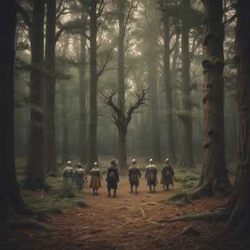 Kicking off with raven caws over bodhrán and distant thunder, the intro melds hurdy-gurdy drones, tin whistle and Wispered Vocals, and ocarina swells; electric guitar and fiddle shred into the verse, where growled vocals spar with dense folk backings, Pre-chorus drops to mystical calm—pipes weave, harmonies rise, The chorus bursts with epic clean Raw Raspy Duett vocals, massive power metal riffing, layered pipes, and fiery drums, effects-laden and intense, Breakdowns spotlight fiddle/whistle, pulsing beneath roaring fire, Solos blend guitar with ocarina/fiddle dueling; wild, shifting textures drive fierce, ritualistic energy till the finale fades in mist and crackling embers