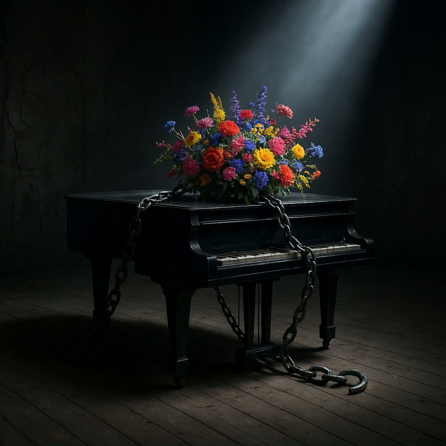 Clean, crisp hard rock with raw emotion and precise dynamics, The sound is stripped-down and direct: a single clean electric guitar carrying crisp textures and accents, a single clean but slightly droning bass providing steady foundation, and piano dominating in the lowest octaves with occasional melodies in higher registers, The intro begins with low-octave piano and bass, heavy and quiet, building into a short dramatic burst before silence, From Verse 1 onward, higher piano melodies add clarity while guitar enters subtly, growing in presence, The bass remains restrained, more felt than heard, droning under the arrangement, The lead electric guitar becomes central in the instrumental solo: expressive, dominant, fully carrying the mix without distortion, Vocals are clear, strong, and unprocessed, alternating between intensity, emotion, restraint, and calmness, Dynamics rise and fall with intensity, never thrashing or overproduced – hard, clean, and true
