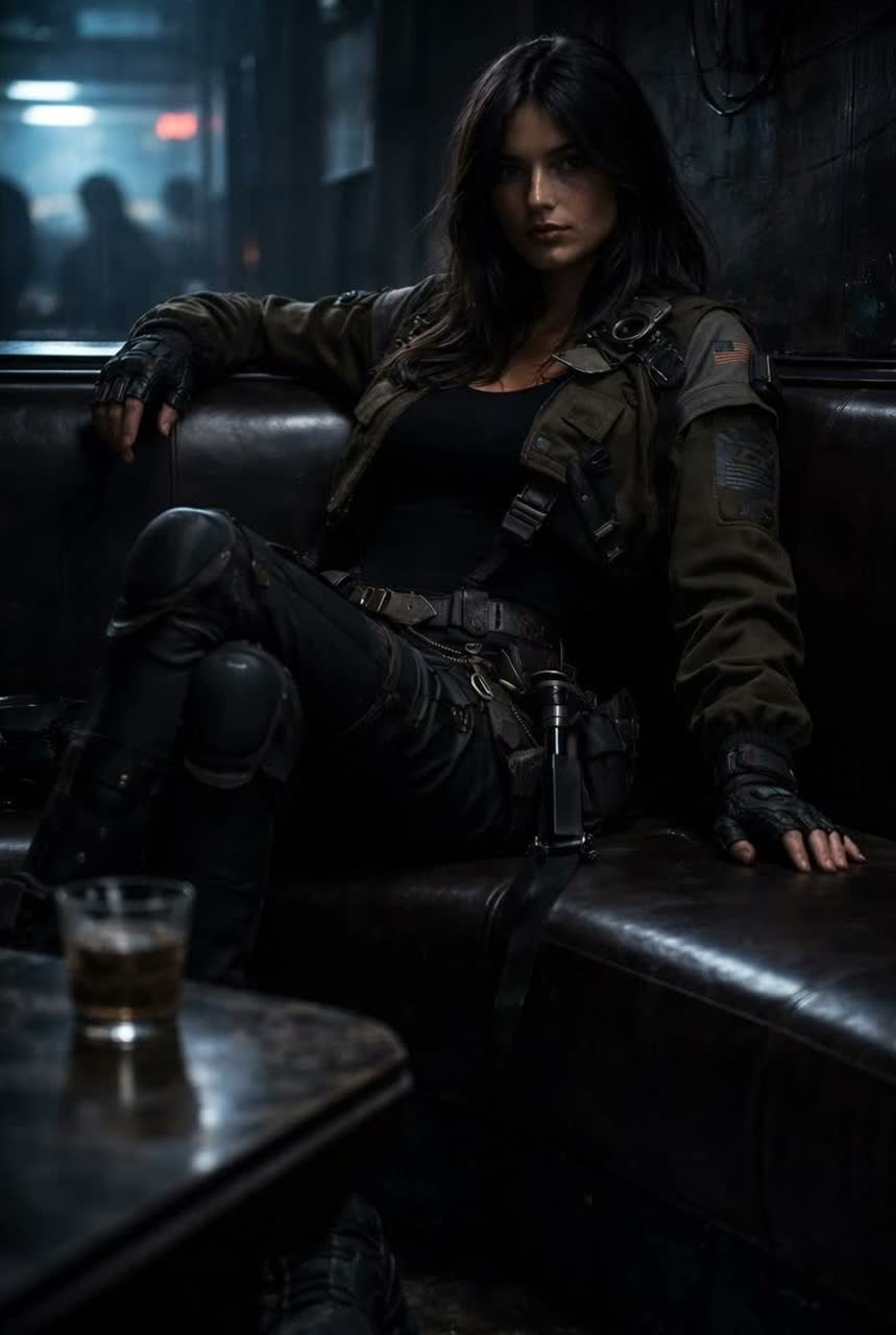 Cold industrial darkwave × post-punk × cinematic cyberpunk score, 96 BPM, minor key with Phrygian tension, Stark contrast between corporate coldness and Badlands brutality, Icy, sterile synth pads like fluorescent-lit office corridors, mechanical clocked pulses, rigid sequenced synth bass, cold gated reverb, subtle digital distortion, Verses feel controlled, restrained, emotionally frozen, Badlands elements: dry distorted bass grit, raw analog edge, low-end rumble like engines idling in dust, metallic percussion hits (scraped steel, muted impacts), minimal but heavier kick presence, Percussion tight and unforgiving, no groove looseness, Female vocal lead: low-to-mid register, emotionally restrained, distant and controlled in verses, breaking slightly in choruses without screaming, Spoken intro intimate, close-mic, cold, Final chorus wider, heavier, more pressure, not faster, Mix dark, cold, oppressive, cinematic, no warmth, no pop sheen, no softness, ‑Chorus, ‑layered Voices