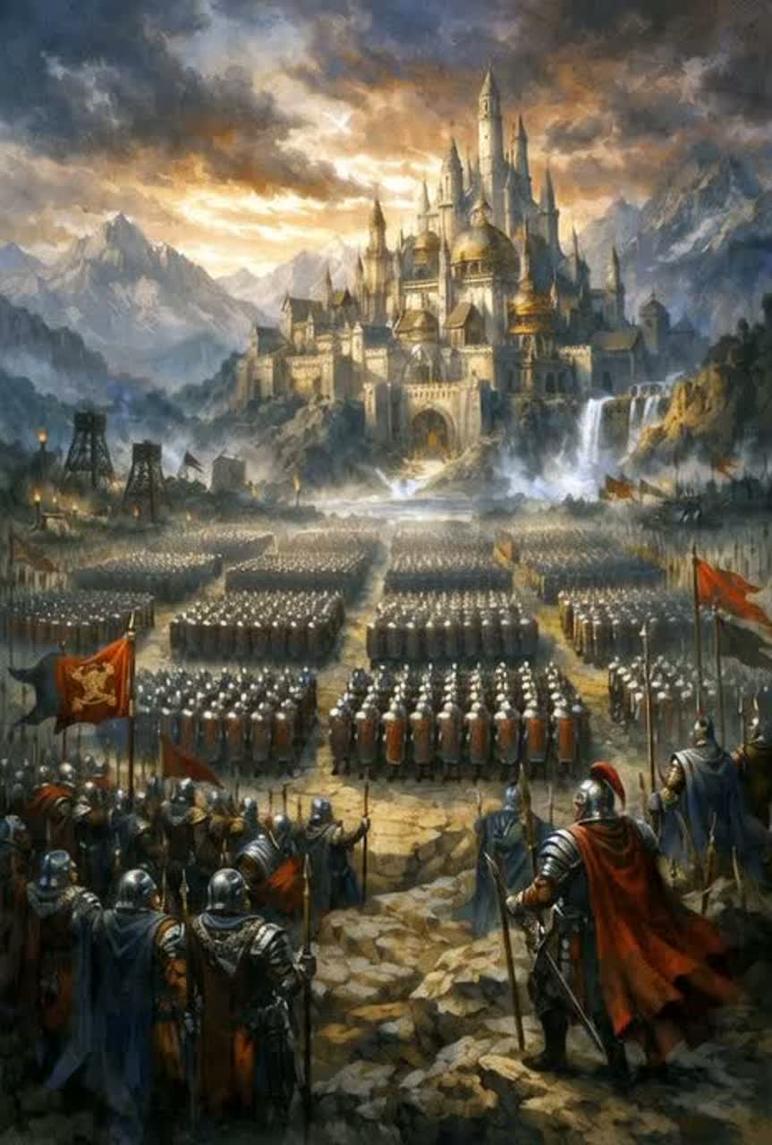 epic orchestral, violins, barbarian epic, fast, gallop-driven, choral, choir, heroic, battle, melodic, wagnerian, hybrid orchestral, rhythmic, modern, gregorian chant, choirs, full choir, classic opera, conan, battle, film score, fantasy, ghotic opera