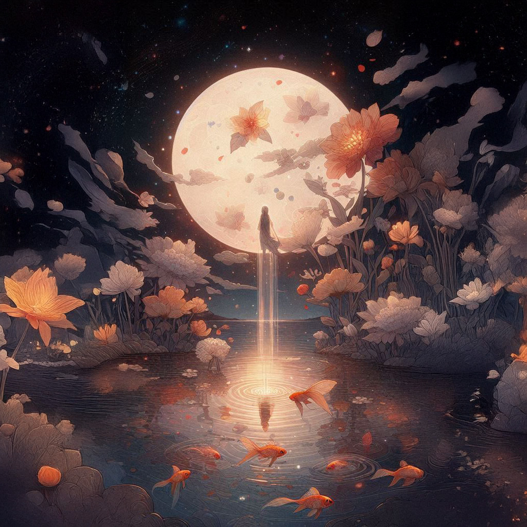 melodic trance, dreamy and emotional atmosphere, A gentle lullaby, The vocals are whispered, very quiet and intimate, like a soft breath on the wind, There are no percussion or beats, just dreamy bell sounds and ambient textures, creating an overall gentle, very slow tempo and delicate atmosphere, Rich harmonious humming is added in the [Interlude] and at the [Outro], creating a gentle worldview