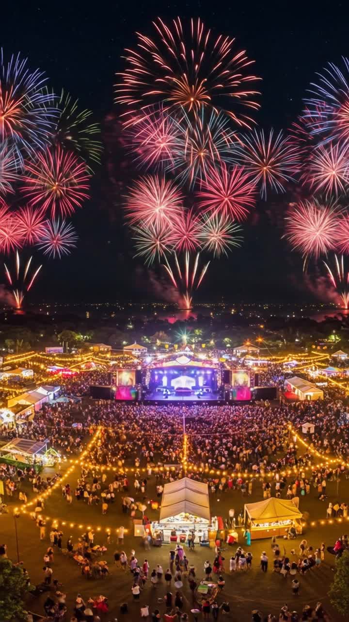 An instrumental track inspired by Japanese fireworks and summer festivals, Features traditional Japanese instruments such as shamisen, shakuhachi, and taiko drums, combined with cinematic strings and ambient textures, The piece begins with a calm night atmosphere, then slowly builds tension like a firework being lit, The climax bursts with rhythmic taiko and bright melodies, evoking colorful explosions in the sky, Ends with gentle wind chimes and distant echoes, Emotional, nostalgic, and vividly cinematic