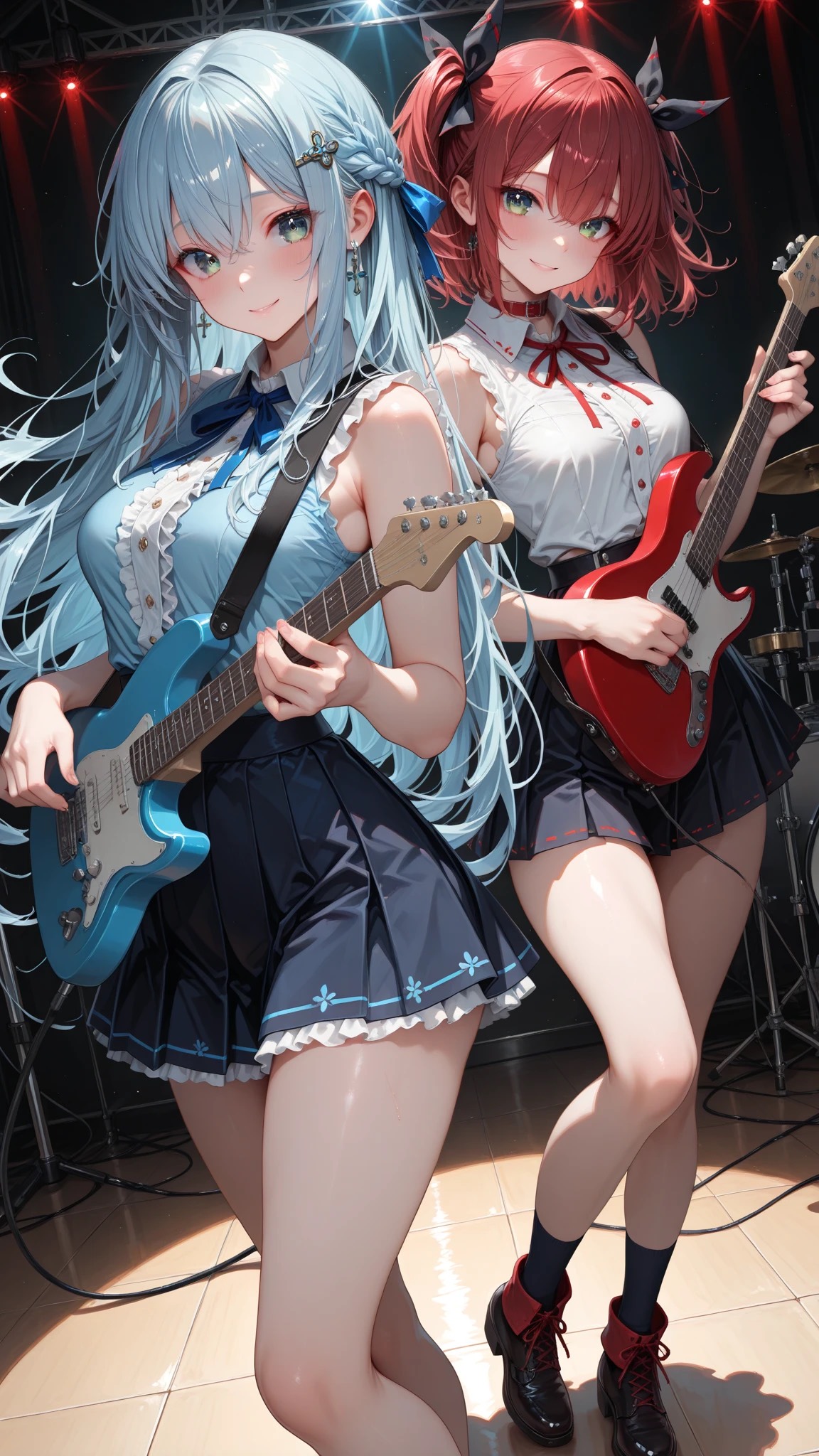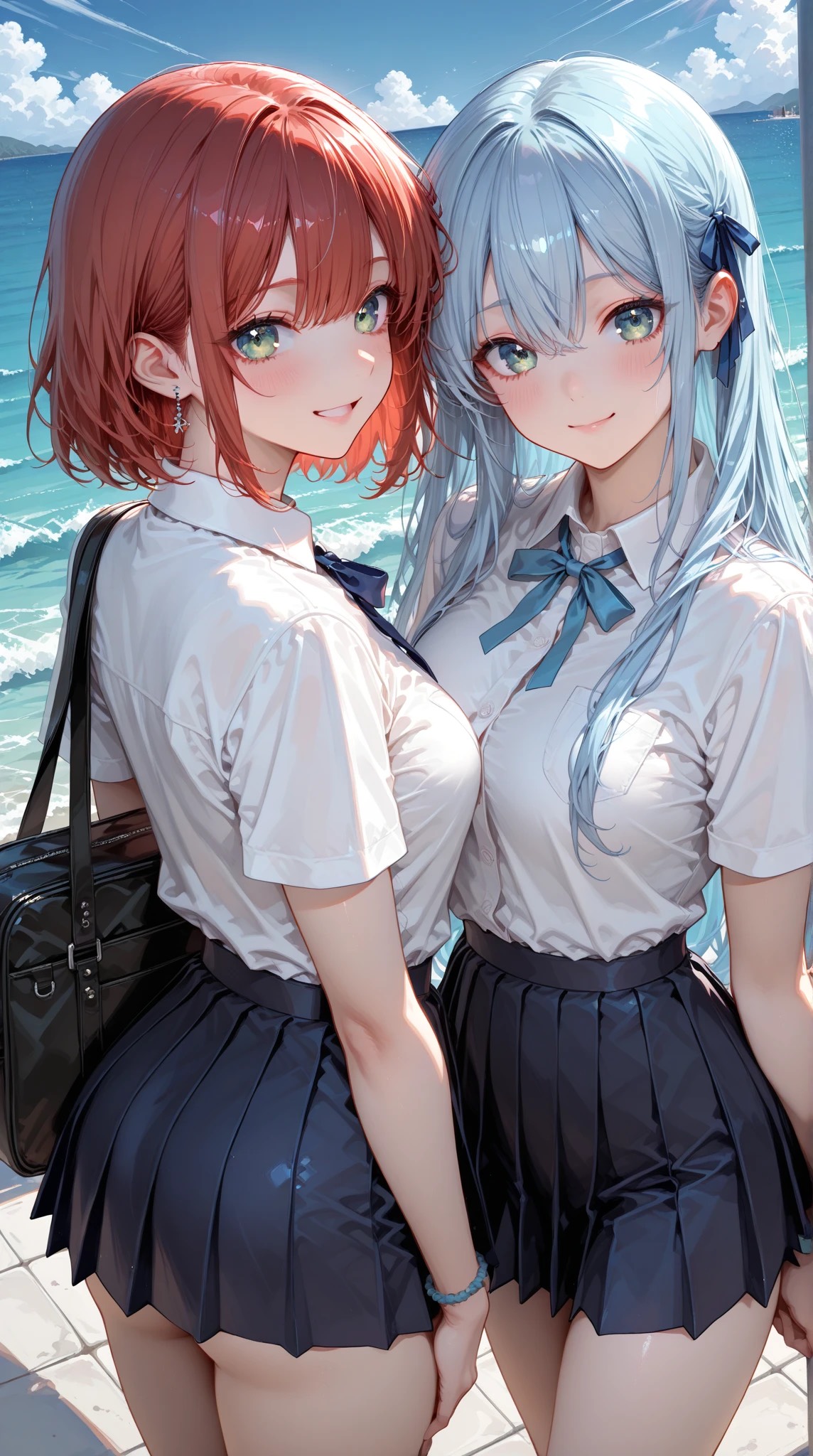A bright and emotional Japanese pop song with light rock and folk influences, yuri, first love, resonance of hearts, female vocal, sweet and energetic yet tender tone, electric guitar with light distortion, acoustic rhythm, catchy J-pop melody, summer high school atmosphere, lyrics about first love, resonance, heartbeat, and shared youth, two girls discovering their feelings and their voices resonating together, uplifting and sparkling sound, like a youth anime opening, medium-fast tempo, emotional chorus with harmony, include resonance-style effects in synths or guitar to emphasize the theme