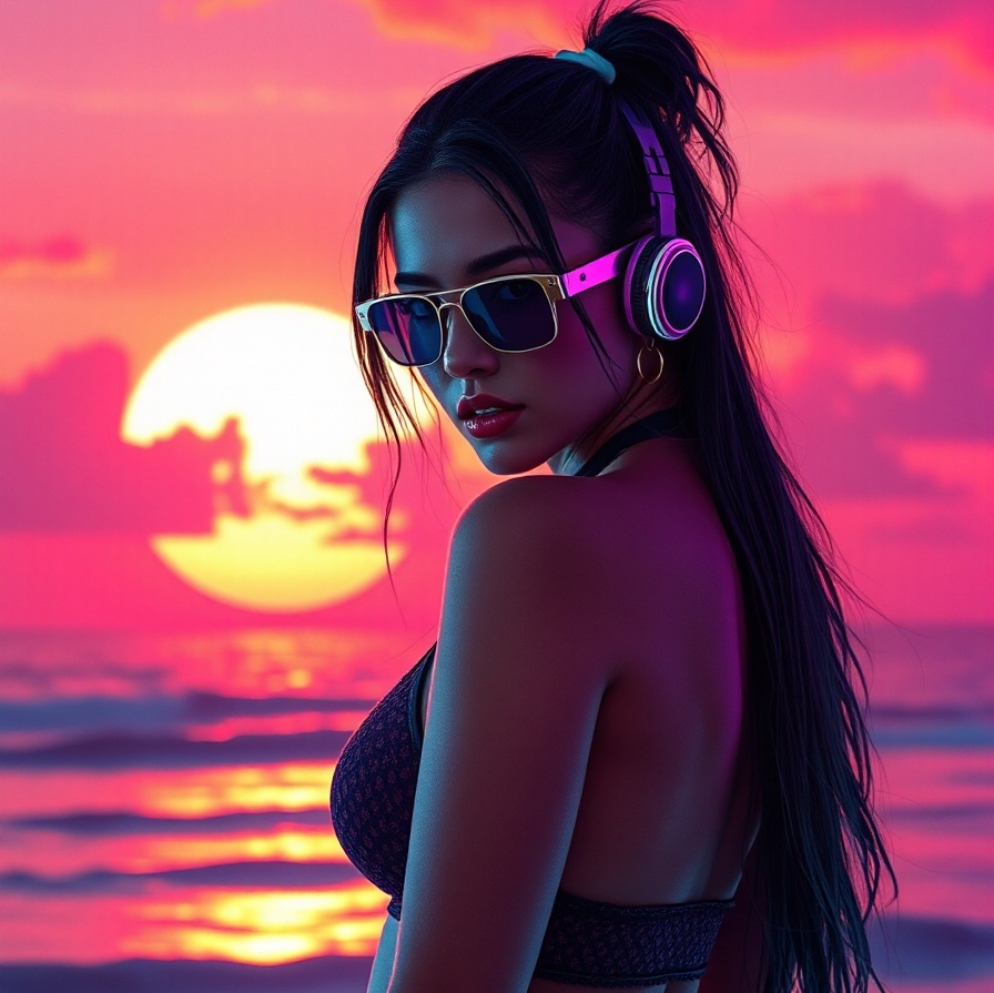 synthwave, rock 80s, Roland TR-707 or TR-808 style, electric bass, and reverb-heavy effects typical for the 80s