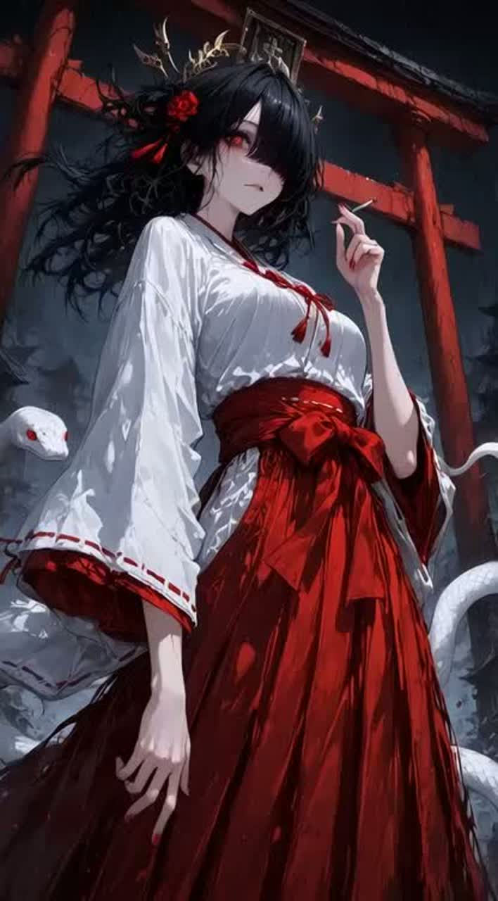 female dark whisper & powerful vocal, slow to mid tempo, heavy taiko drums, shamisen & koto with distortion, deep reverb, cold ambient pads, minimal melody, oppressive silence gaps, ritualistic rhythm, cinematic darkness, forbidden shrine vibe
