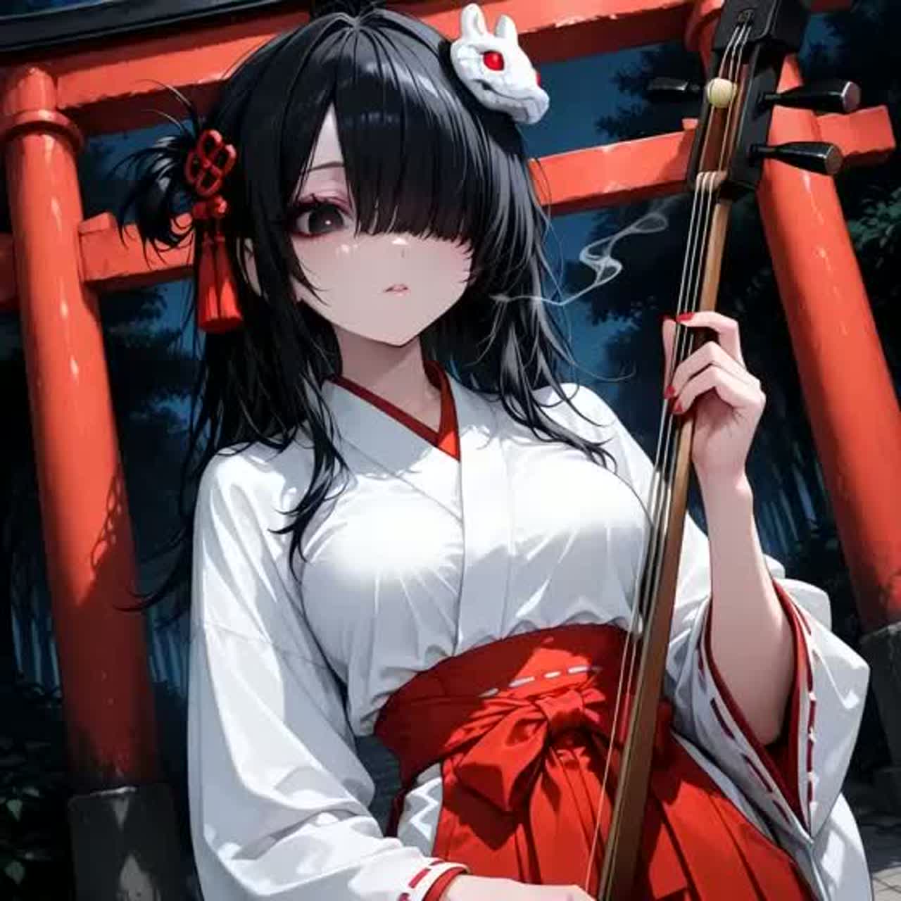 Japanese traditional× Gothiccore×Dark EDM, Electric shamisen riff, bamboo flute, taiko drive, koto Ambient, biwa, Japanese Synthesizer, aggressive Girl Alto Vocal