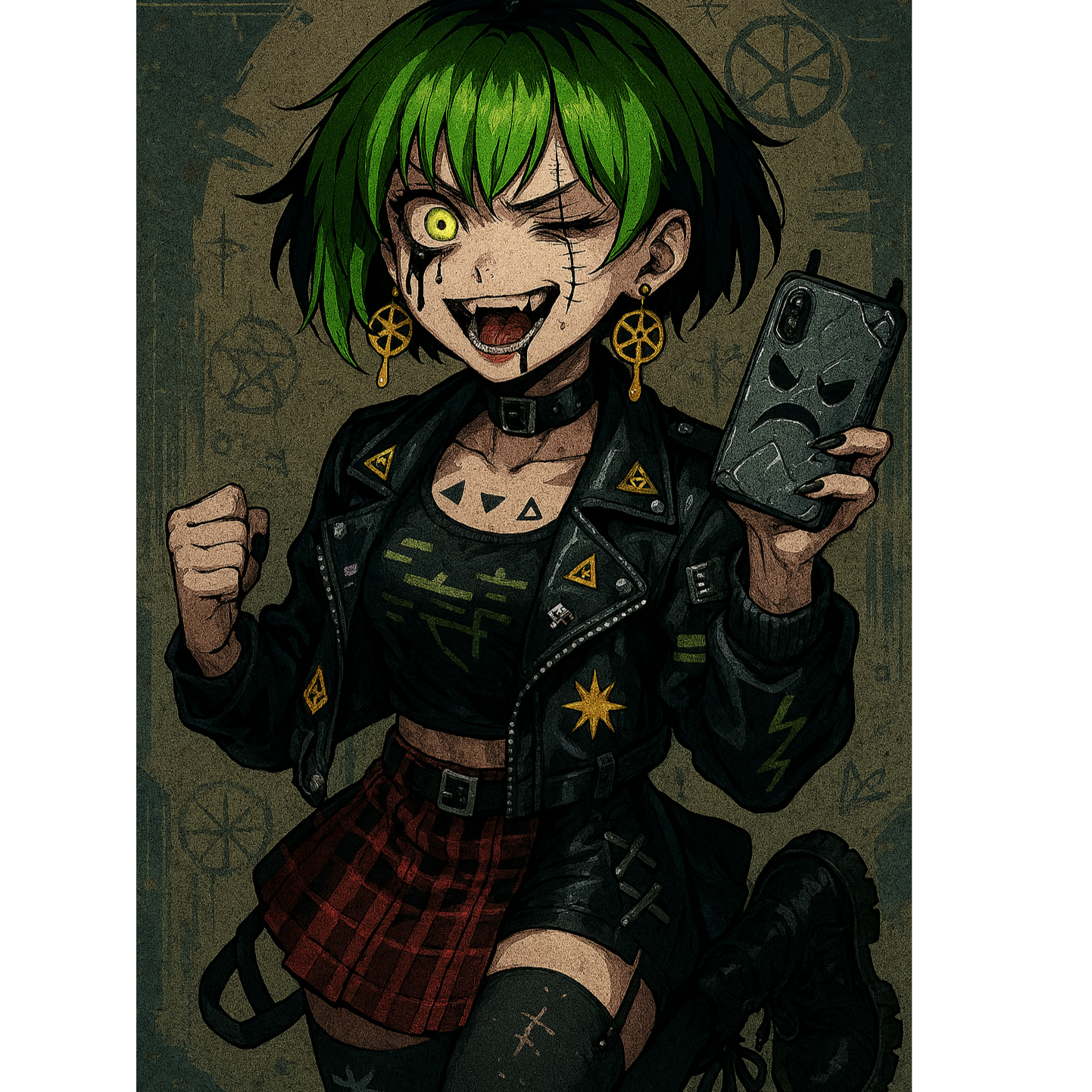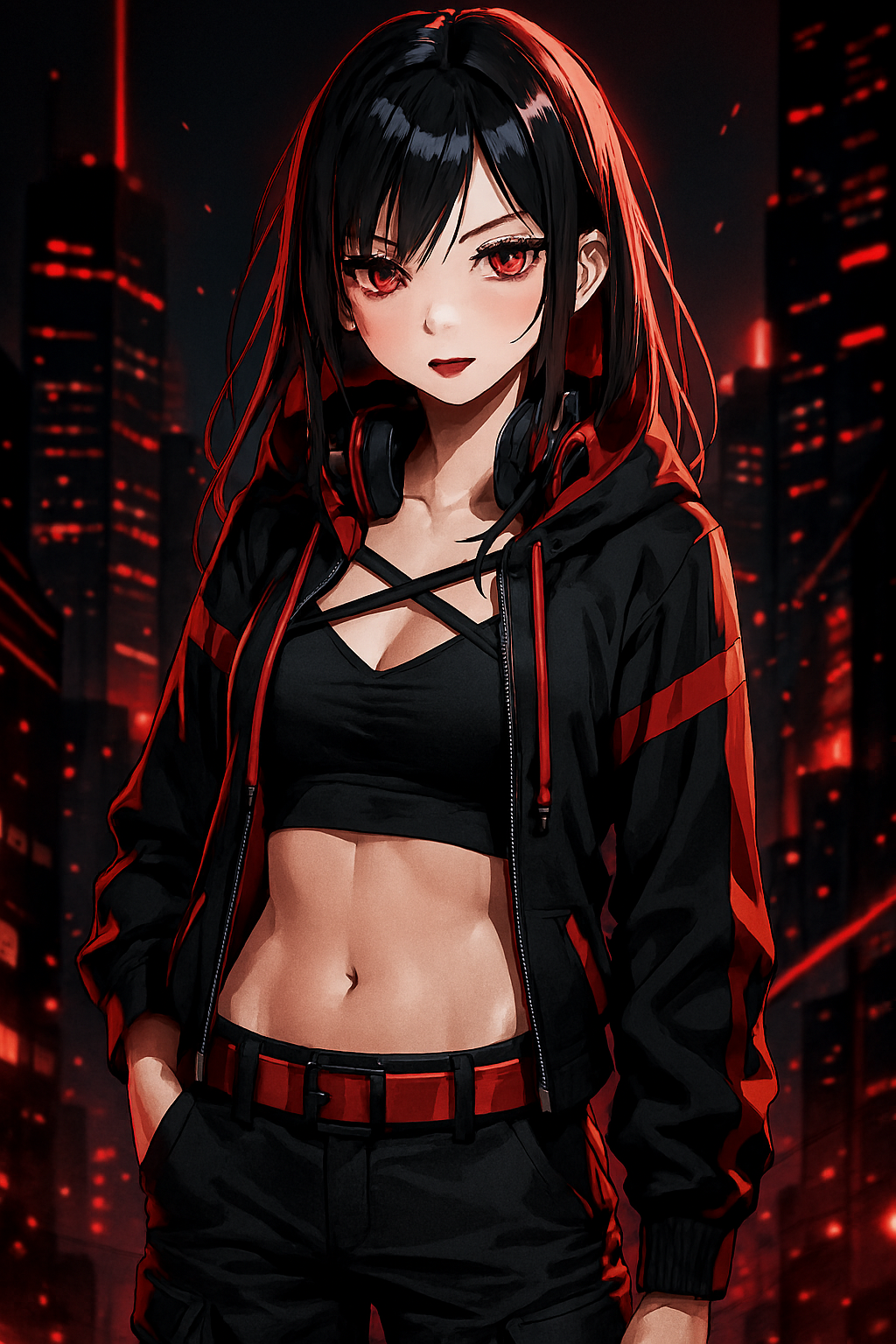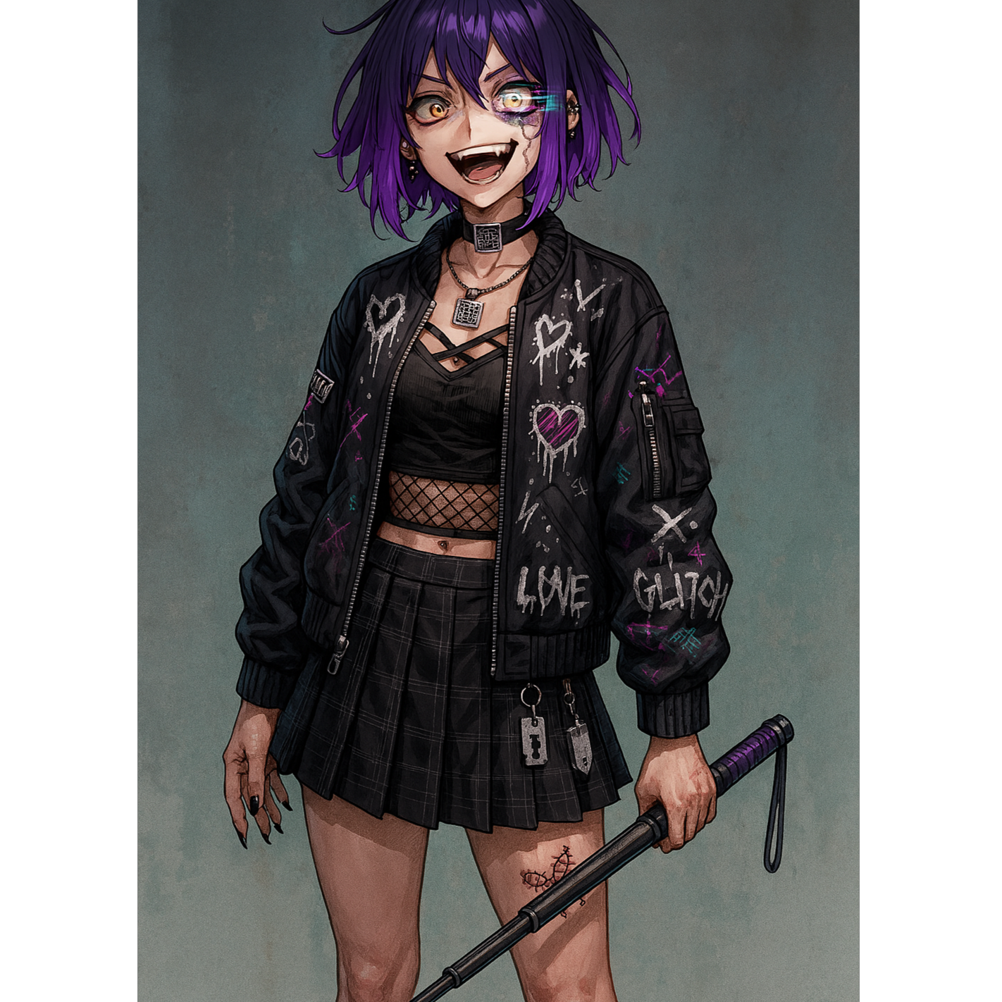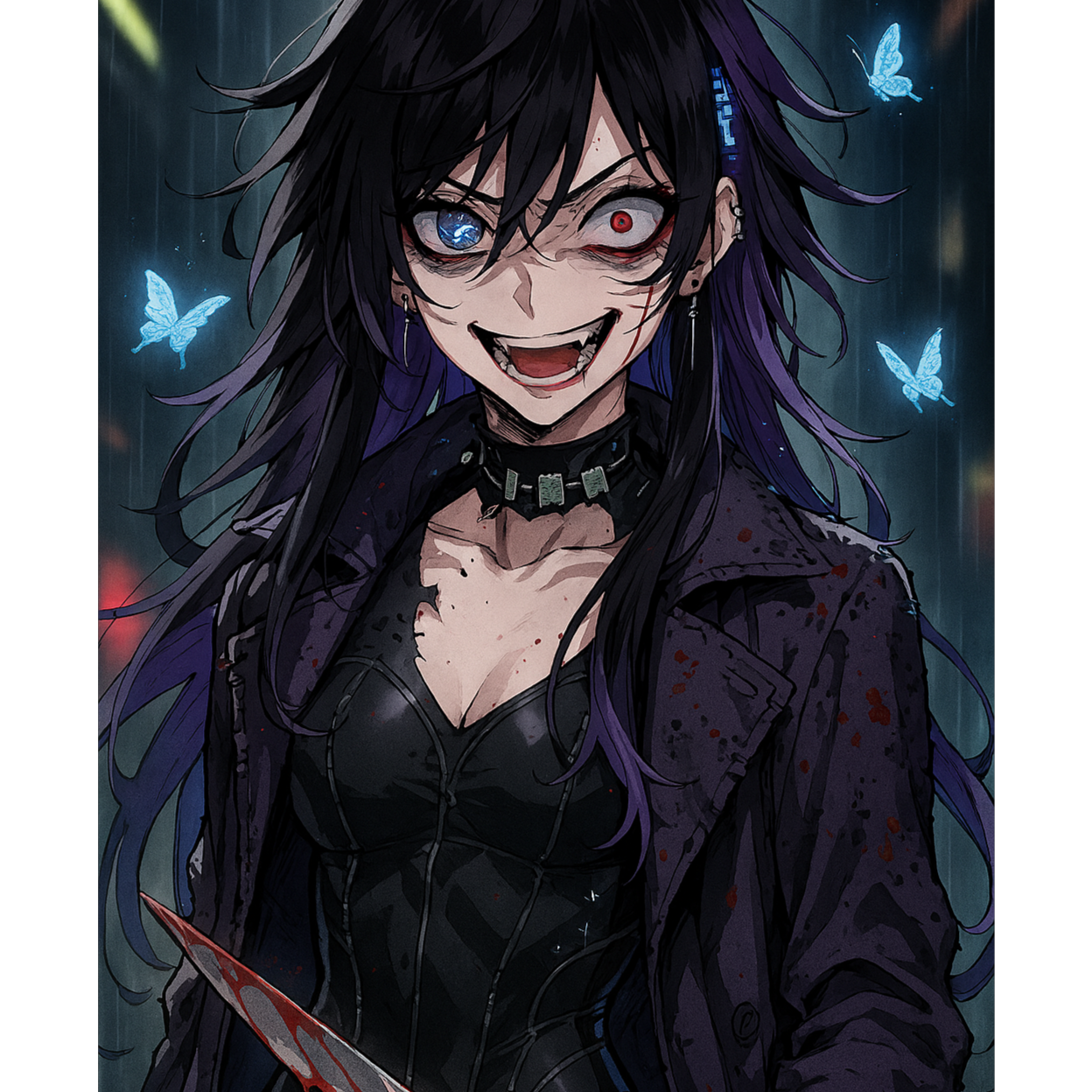 This darkwave-hyperpop fusion smolders with gritty, distorted basslines and haunting synths, Techno and trance layers build an epic atmosphere, surging into a hard trap beat drop, Sharp snares and pounding kicks drive electrifying rap female vocals with a fast, hypnotic flow, Ethereal textures swirl above intense drum and bass rhythms, adding a sense of madness, The arrangement weaves pop rock elements, an exotica flair, and terror-tinged motifs, all propelled by a carefully programmed drum machine and professional mixing for a massive, cinematic impact