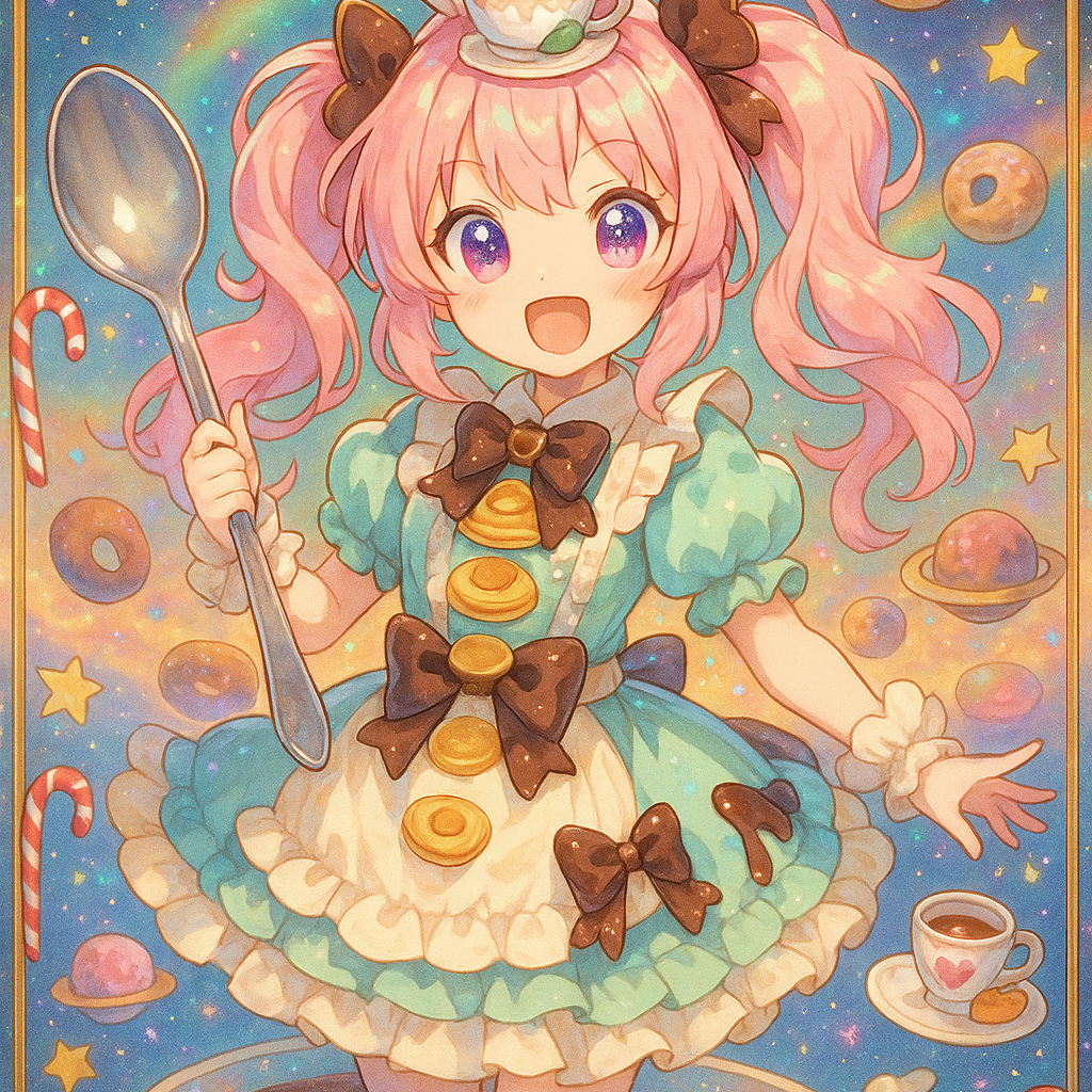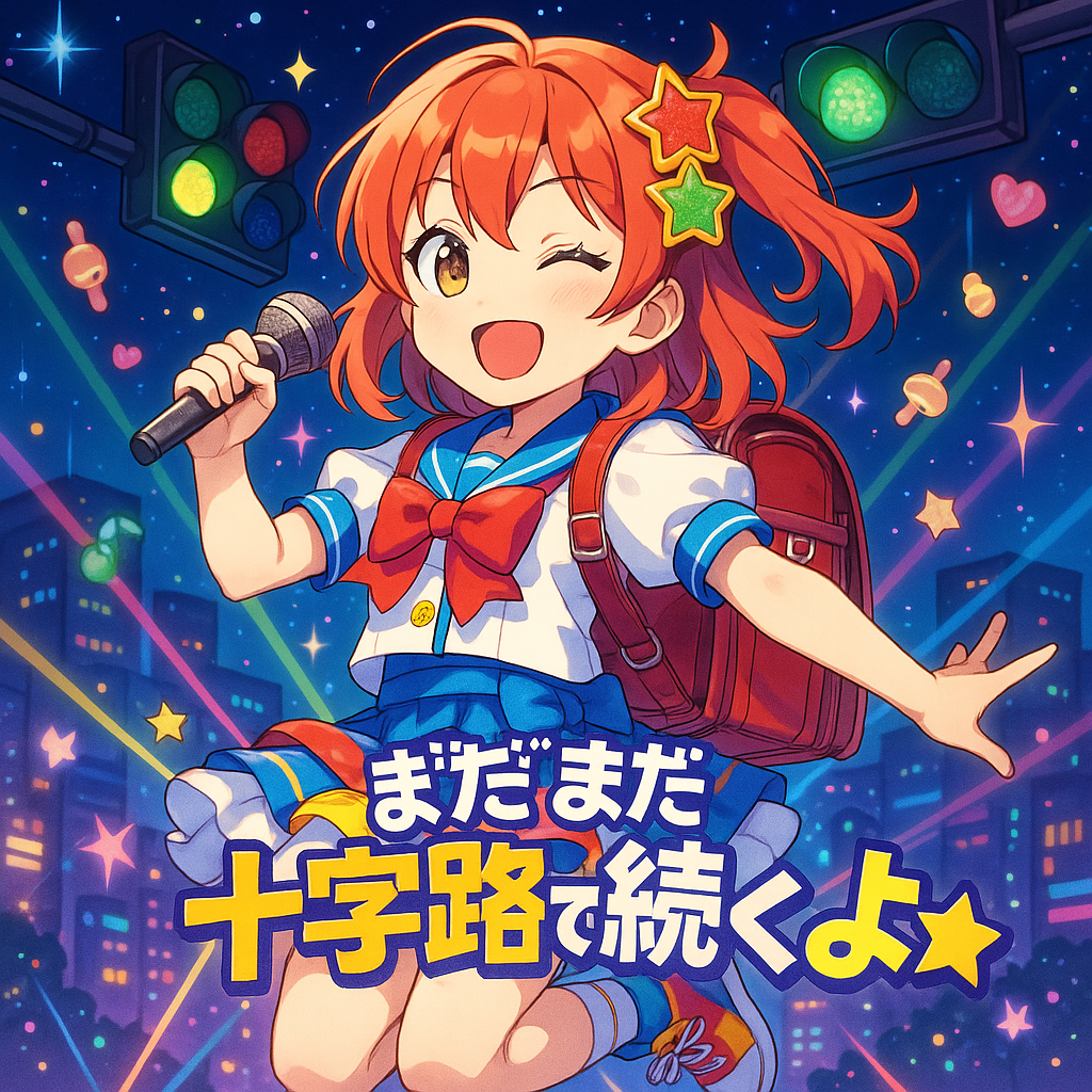 A quirky Denpa song layered over a Bossa Nova groove: bouncy, syncopated electric piano and nylon-string guitar provide a breezy rhythm, while bright synths and playful melodies create a kaleidoscopic texture, Hyperactive percussion, swingy bass, and charismatic group vocals energize each section