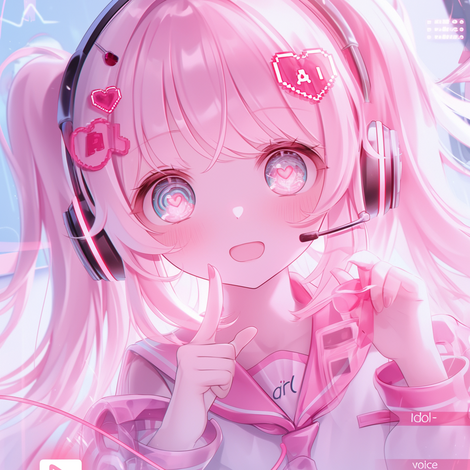 for a playful, romantic, slightly comedic atmosphere, Lyrics depict an AI voice-assistant idol falling in love with the listener’s voice, through metaphors of blinking REC lights, waveforms/latency-zero hugs, and infinite loops, Female seiyuu-style vocalist with cute, expressive tone —