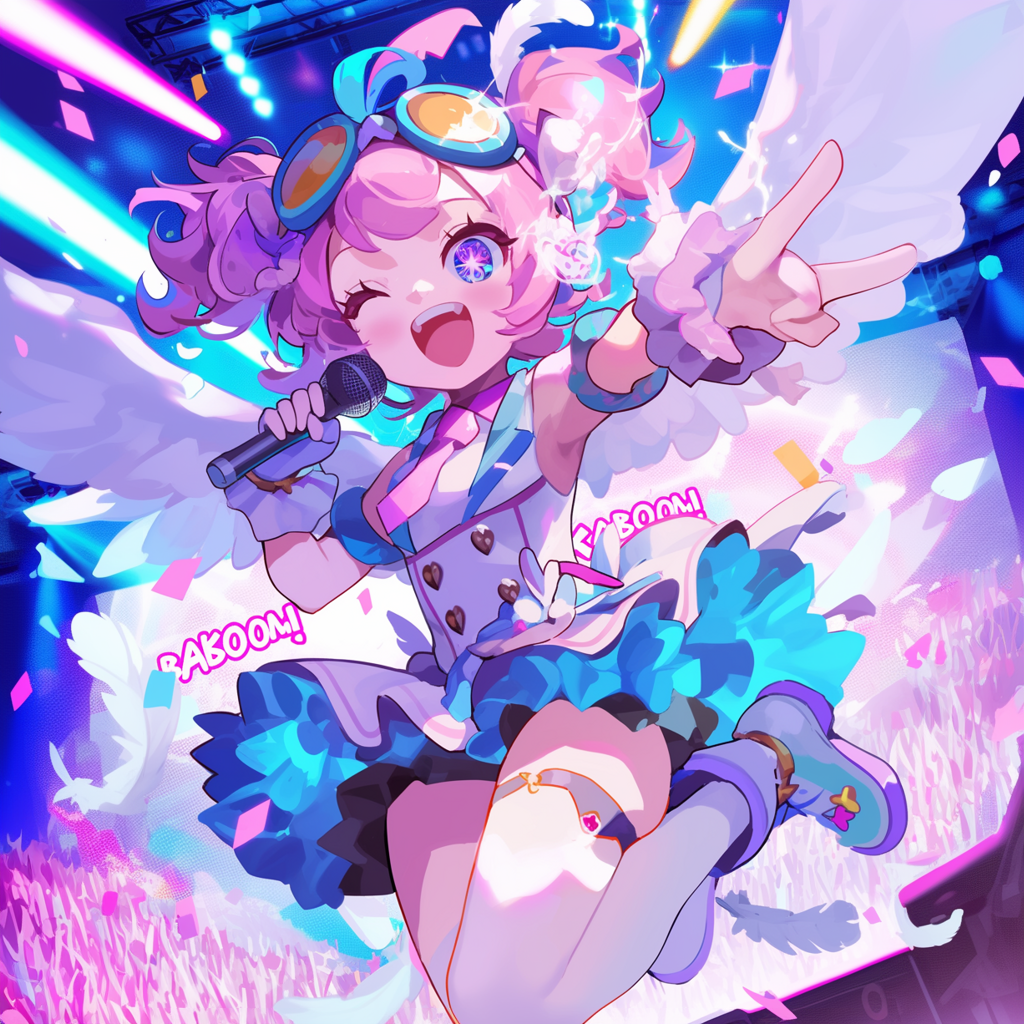 teasing in verses, explosive in choruses, mischievous in bridges, Fun sound effects (pshh, pop, beep!) layered throughout, BPM 180, upbeat and catchy, ideal for character-themed anime opening