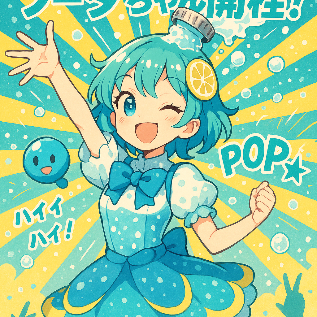 Denpa Song, kawaii J-pop, hyper bubblegum pop with cute vocals, 8bit chiptune and fizzy synth textures, toy percussion, retro video game beeps, Inspired by Soda-themed mascots and pop idol catchphrases, Female vocal with high-pitched, playful tone —