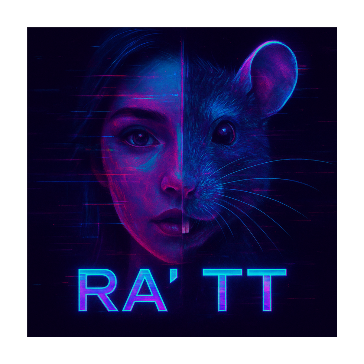 Create a hypnotic electronic track called "Ra' TT", blending EDM, trance and techno, Female lead vocal: young, vibrant, ethereal, alternating with robotic, futuristic vocoder voices, Lyrics are playful and multilingual (English with Portuguese, French and Spanish words), The music should feel hypnotic, with a deep and intense club beat (128-132 BPM), pulsing bass, trance-inspired arpeggios, techno kicks, and atmospheric synth layers, Build-ups and drops must be energetic