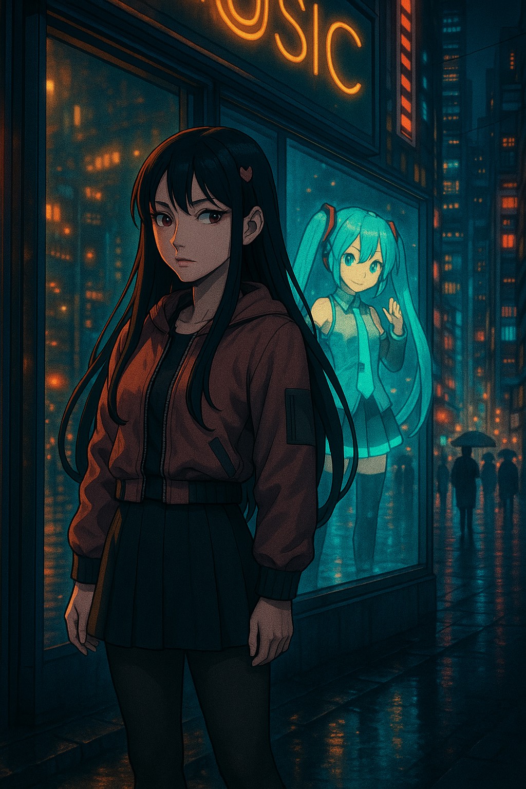 Vocaloid-driven metal track with a dark, seductive atmosphere, Vocals are sultry, smooth, and sly; layered with breathy harmonies and glitchy inflections, Tempos shift between slow, hypnotic grooves and sudden bursts of metallic aggression, Guitars are distorted and gritty, but groove-heavy; riffs pulse like a heartbeat beneath velvet synth textures, Include industrial elements; clicks, whispers, metallic creaks; for a tense, sensual soundscape, Bass is thick and slow-moving; drums are sharp and precise, with syncopated rhythms that build suspense, Emphasize control, temptation, and danger; a sound that feels like being drawn into something forbidden, Production should be sleek and immersive; a velvet-draped nightmare with steel beneath, intensity but reframed as a seductive descent; manipulative, intoxicating, and beautiful in its corruption
