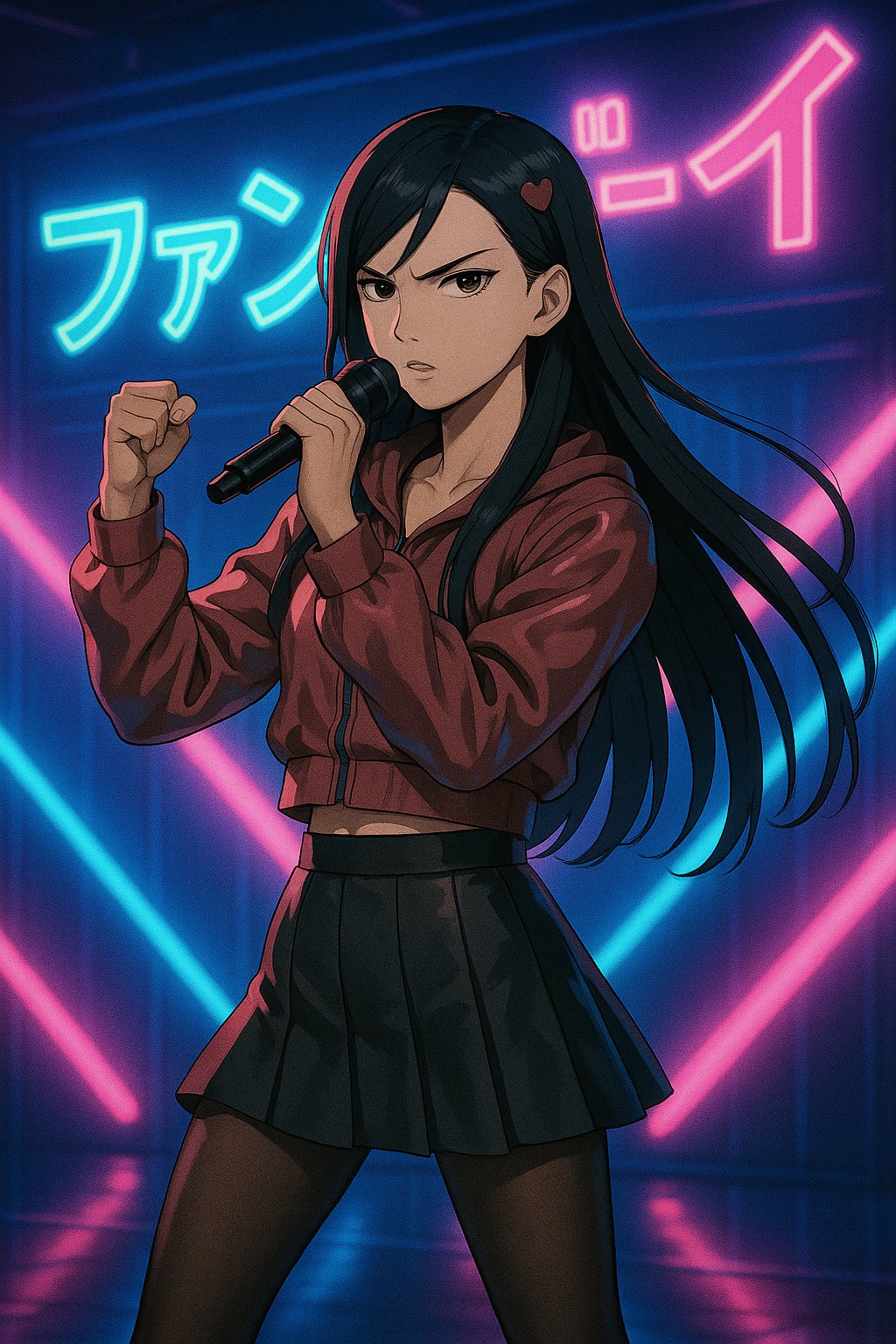 High-energy hybrid track with contrasting sections, upbeat, catchy verses with fast, danceable rhythms, bright synth leads, and melodic guitar riffs, Verses should have a bouncy, pop-punk or J-rock feel, with clean, uplifting vocaloid melodies, Pre-chorus builds with driving percussion, layered harmonies, and rising tension, Switch to aggressive, glitchy metal for the chorus, bridge, and breakdown, fast, palm-muted guitars, rapid double-kick drumming, and heavily distorted, machine-like basslines, Vocaloid vocals become sharp, harsh, and chaotic, layered with glitch effects and screamed phrases, Frantic, intense, and sonically unpredictable, Emphasize dynamic contrast, sudden tempo shifts, and a sense of digital overload in the heavier sections, while maintaining high energy throughout