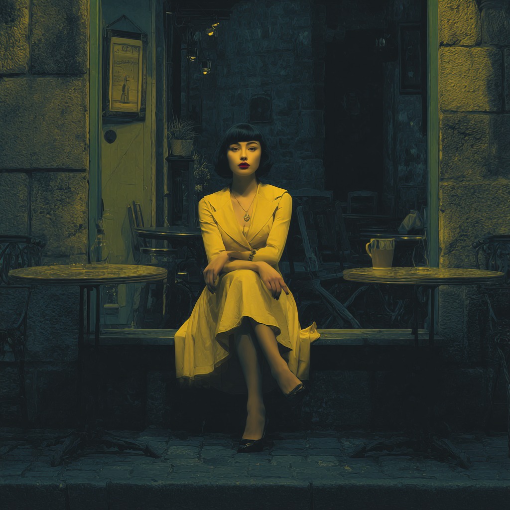 Cinematic spoken word piece transitioning into a sophisticated jazz-classical fusion, The track begins with a deep, resonant male baritone voice delivering a narrative over ambient cafe background noise, including muffled chatter and clinking cups, At the midpoint, the arrangement shifts into a lively instrumental featuring a prominent, virtuosic solo violin performing intricate, gypsy-jazz inspired melodic runs, The accompaniment consists of a bright, rhythmic acoustic piano playing staccato chords and a walking upright bass, The tempo is moderate, approximately 110 BPM, with a swing feel, Production is clean and dry, emphasizing the natural timbre of the strings and the percussive nature of the piano keys, The harmonic structure moves through minor-key jazz progressions with frequent chromatic passing tones