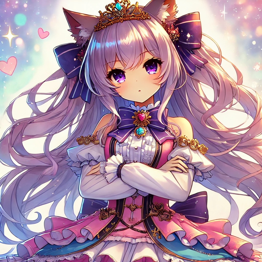 playful, dramatic, and tsundere-esque, with a mix of orchestral J-pop and bouncy bedroom pop beats—royalty-core meets cat-like clinginess