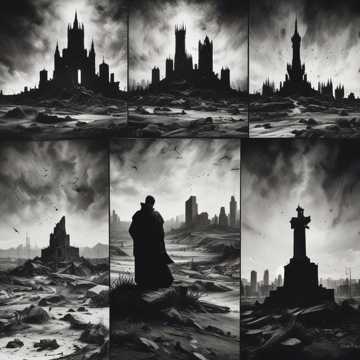 Unsettling hope intro; chaotic drums/guitar show war’s pain, Cold silence reflects sorrow and ruin; end in quiet resilie