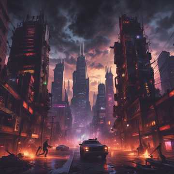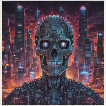 Electronic sounds and metallic guitar riffs, Powerful electro-rock and cyber-metal sounds, tsugaru-shamisenn, shakuhachi
