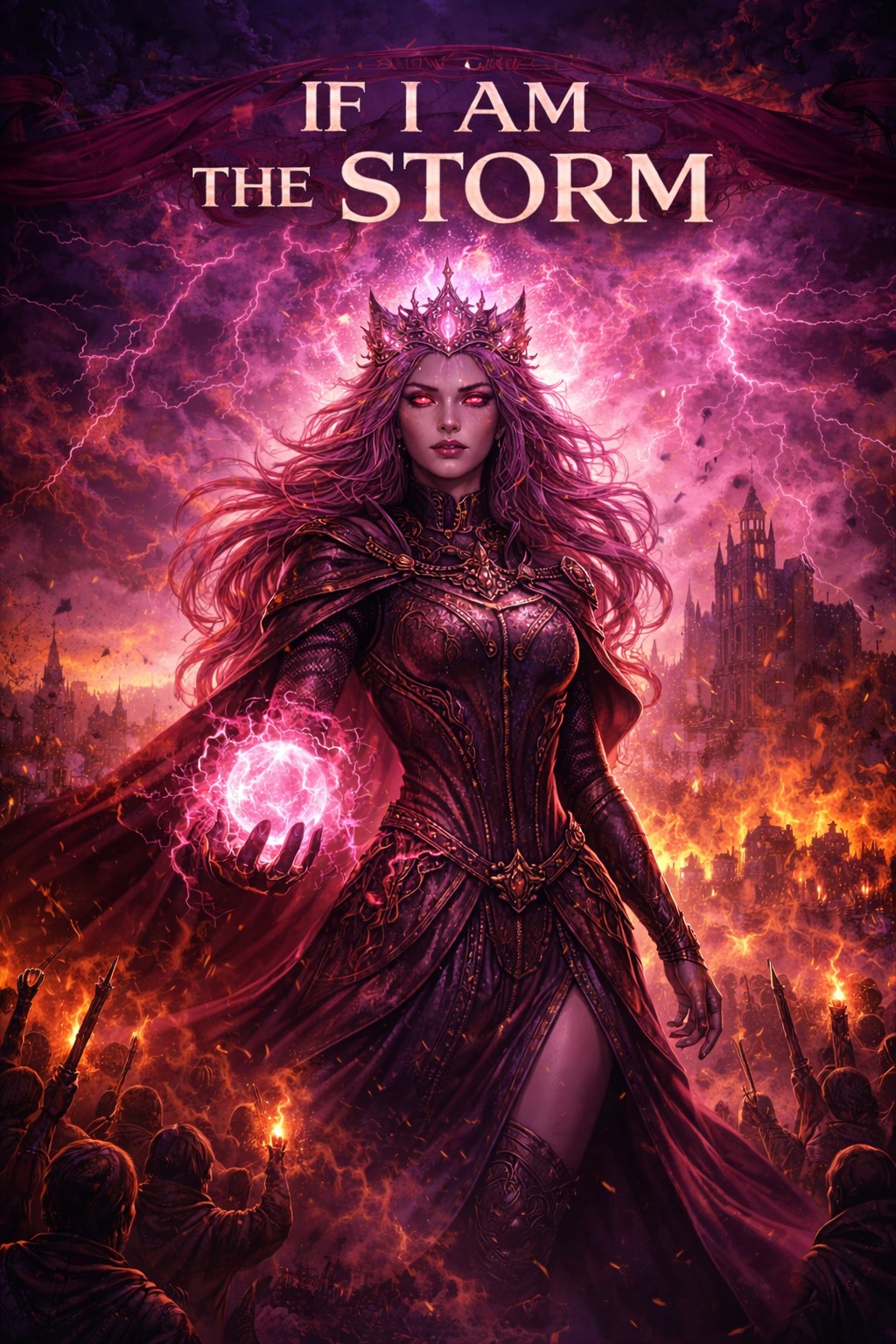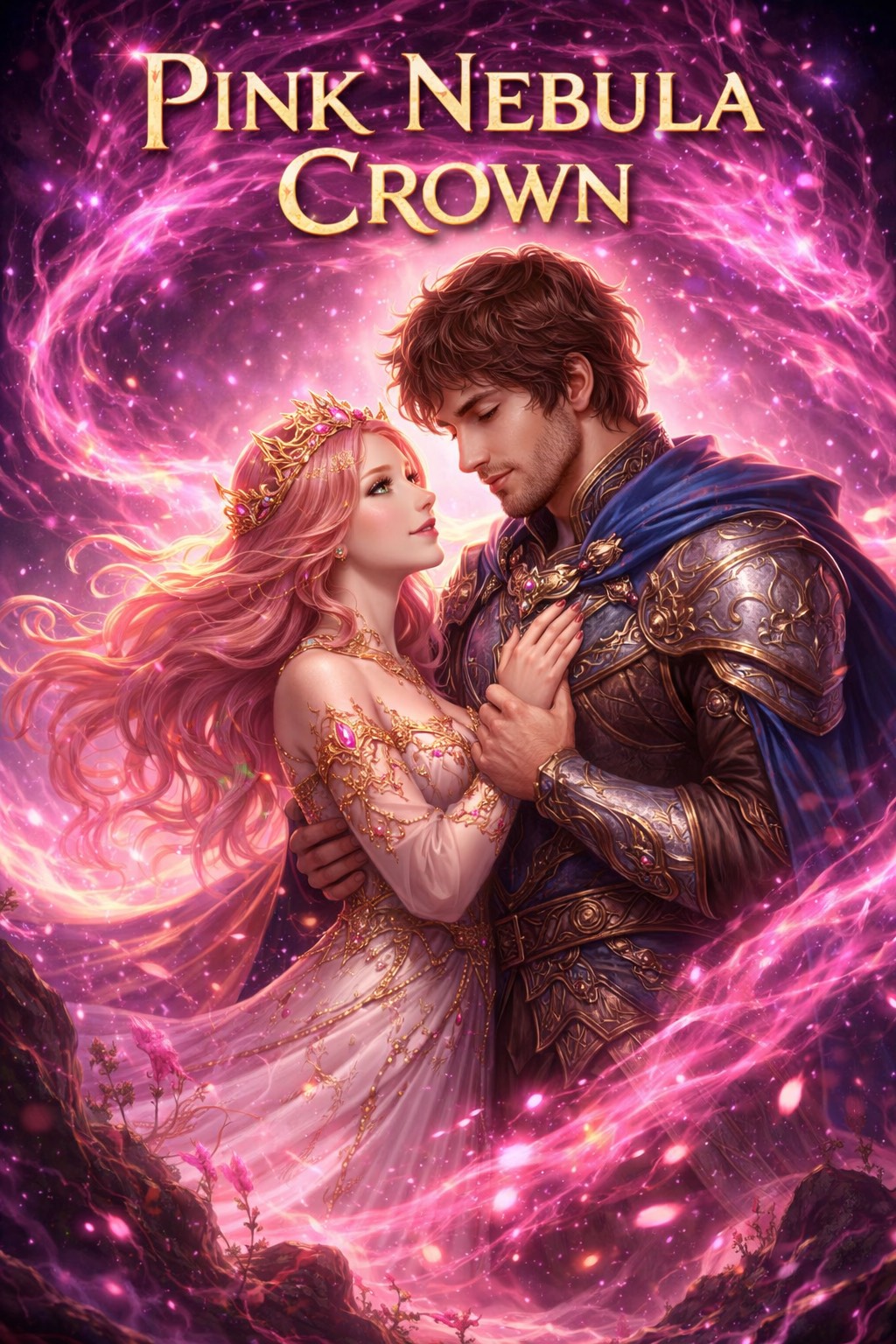 Epic orchestral fantasy anthem about a chaotic pink cosmic god sealed and reborn as a cat princess, who falls in love with an anxious bear prince, Mythic tone, cinematic build, dramatic battle section, emotional sacrifice, massive final chorus with orchestral drums and choir, Powerful female lead vocals with male harmonies