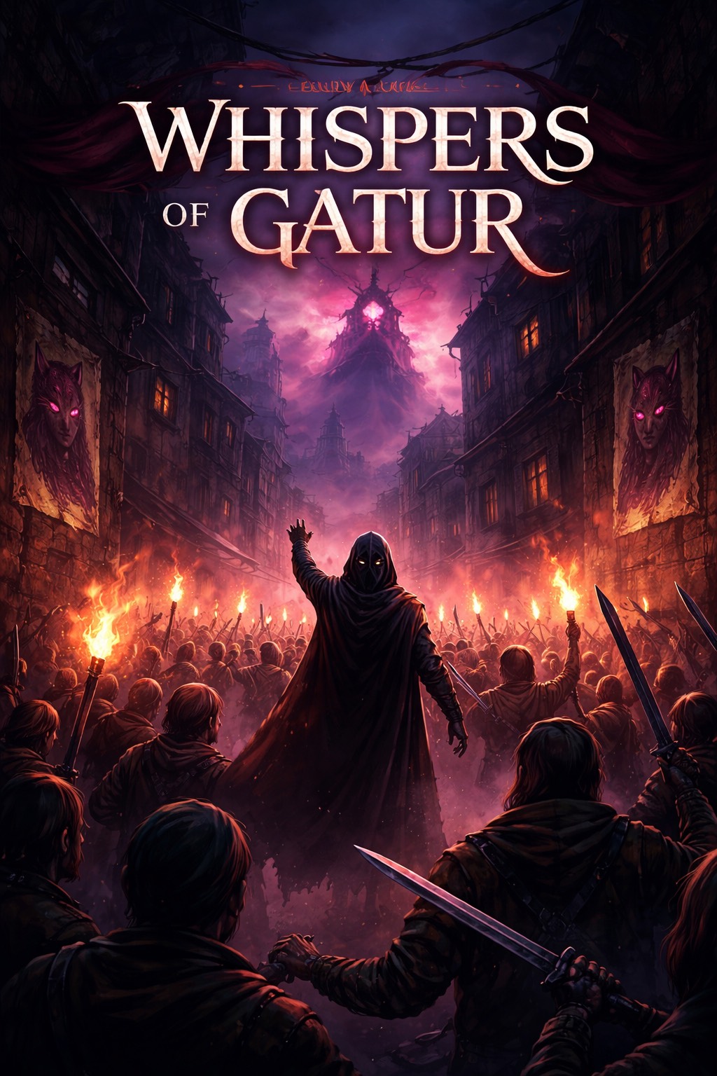 Dark cinematic orchestral rock with heavy percussive drive and rising political tension, Fast-building structure with layered whispered vocals in the intro, creating paranoia and urban unrest, Deep, rhythmic drums inspired by marching patterns, low strings pulsing underneath, Verses feel tense and conspiratorial, Pre-chorus builds urgency with increasing percussion and choral backing, Chorus explodes into a powerful rebel anthem with layered crowd vocals and strong lead male voice, charismatic and persuasive, Bridge becomes minimal and speech-like, almost a revolutionary address, with subtle string tension underneath, Final chorus larger, louder, nearly chaotic but controlled, Mood: paranoia, manipulation, uprising, controlled rage, Tempo: mid-to-fast (100–120 BPM), Key: minor key, dark tonal palette, Atmosphere: medieval kingdom meets modern protest anthem