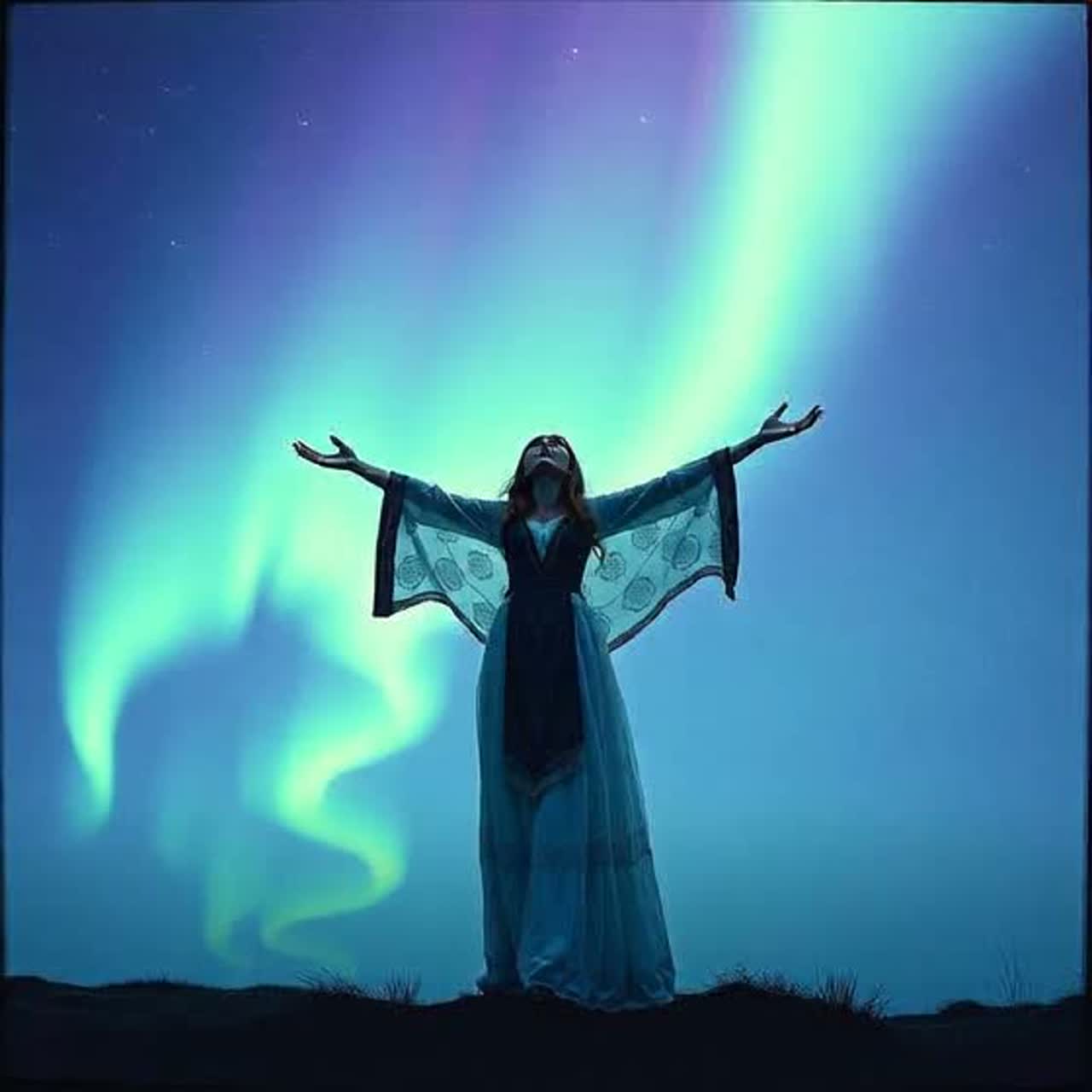 Celtic folk ballad with harp, fiddle, and bagpipes, mystical atmosphere, slow 4/4, ethereal female vocals, reverb-rich soundscape, inspired by northern skies and constellations
