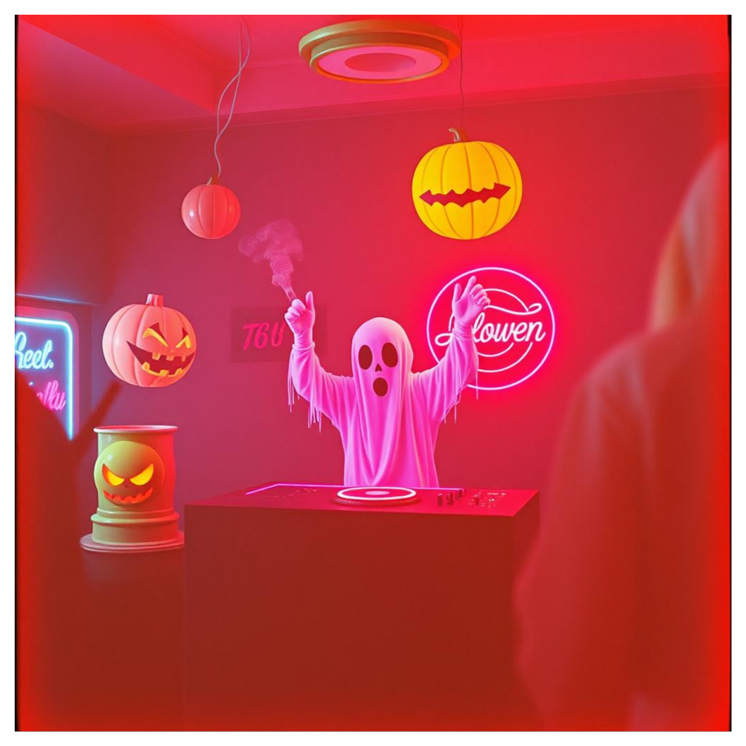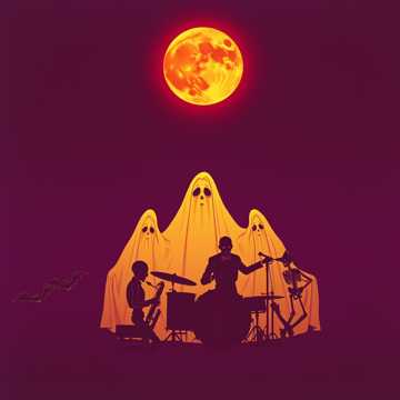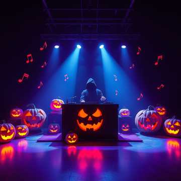 Haunted hybrid of orchestral dubstep and drum & bass, cinematic and spine-chilling, Begin with eerie strings, ghostly choirs, and creaking sound design—like a symphony waking from the grave, Tempo 174 BPM with neuro-inspired bass modulations, glitchy percussion, and half-time dubstep drops that growl like monsters under the floorboards, Layer thunderous timpani, violins in tremolo, and distorted brass hits that swell into distorted bass drops, Mix in whispering vocal chops, reversed piano melodies, and Halloween foley—chains, crows, distant laughter—for atmosphere, The tone is spooky but energetic: part horror soundtrack, part rave apocalypse, Emphasize dynamic contrast: fragile music-box intros erupt into massive orchestral-electronic chaos, Saturated subs, crisp snares, and eerie synth risers, A terrifyingly fun hybrid designed for haunted festivals, dark clubs, or cinematic trailers—where ghosts mosh with basslines and the orchestra howls at the moon