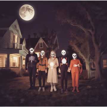 Cinematic Halloween fusion of 1940s crooner jazz and dark modern dubstep, Begin with smoky jazz-club ambience: upright bass, brushed drums, muted trumpet, and haunted piano chords beneath a velvety baritone vocal, The mood is eerie but classy — like a ghost-led big band in a moonlit ballroom, At the pre-drop, tension builds with orchestral brass swells, vinyl crackle, and ghostly choir textures, When the drop hits, the swing rhythm mutates into heavy dubstep basslines, syncopated drums, and distorted brass growls, blending old-school swing swagger with supernatural energy, Include Halloween sound design — creaking doors, howling winds, whispered laughter, thunder claps — woven rhythmically into the percussion, Maintain cinematic orchestral layers throughout, mixing strings, horns, and choir for grandeur, The tone should feel playful, spooky, and suave — a haunted Gatsby party meets bass festival under a blood moon, Rich, dramatic, and danceable — the “Graveyard Swing, ”