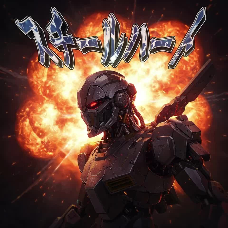 Jungle, anison, rock, emotional, heroic, male vocals, dramatic, anime opening, powerful, intense, passionate, brave, fast tempo, battle theme, Cyberpunk, Industrial Rock, Mecha Soundtrack, Post-Apocalyptic, Sci-fi Action, Male Vocal, Heavy Synth, Distorted Guitar, Aggressive Beat, Cinematic Rock, Robotic F