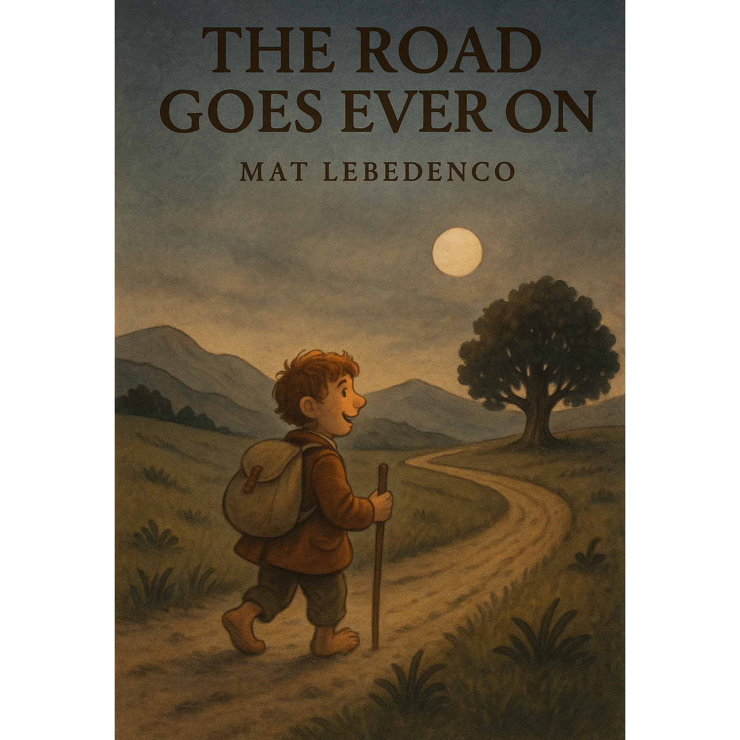 Hobbit walking song with soft tin whistle, Celtic harp, and gentle male voice, Peaceful and nostalgic, as sung by a Hobbit leaving the Shire, Lytics in poetic English