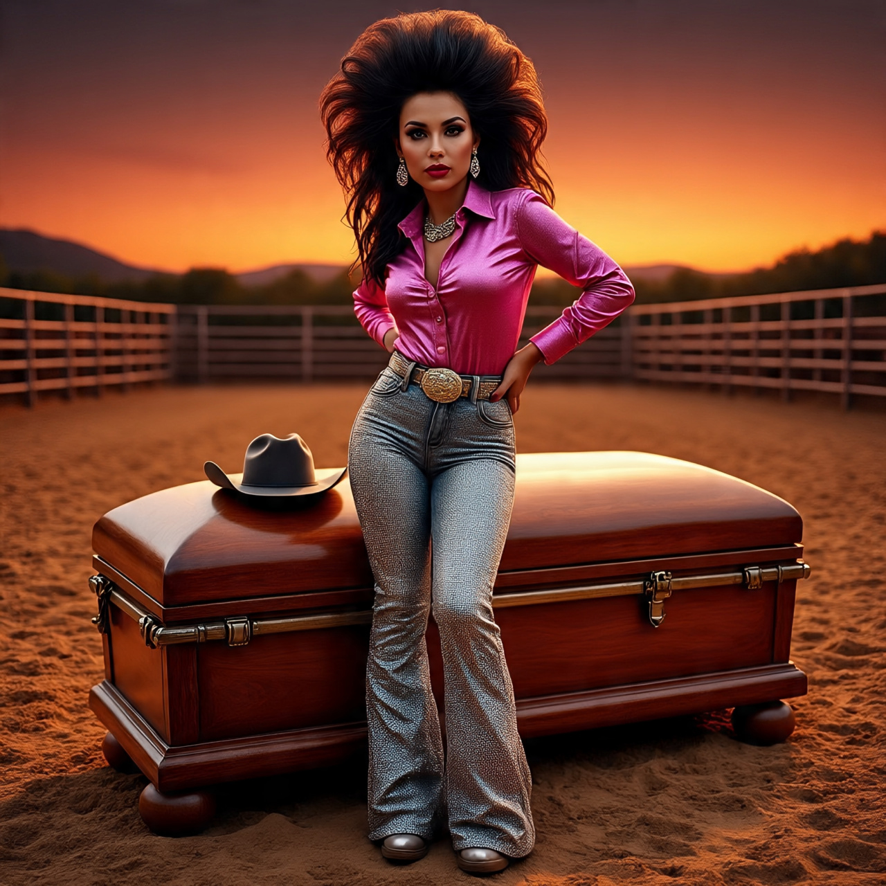 Honky-tonk swinging 1980s hard rocking guitar driven rocking Bakersfield honky-tonk country rock, Twangy Telecaster guitar riffs, fancy fretwork, walking bass line, shuffle drums with strong snare and train beat, bright pedal steel fills, fiddle accents, Lively honky-tonk piano, Male lead vocal with distinctive country nasal twang and swagger, slightly lonesome but playful, Call-and-response backing harmonies, Crisp country production with authentic barroom energy, The song really rocks hard, Lost of hooks, catchy, memorable