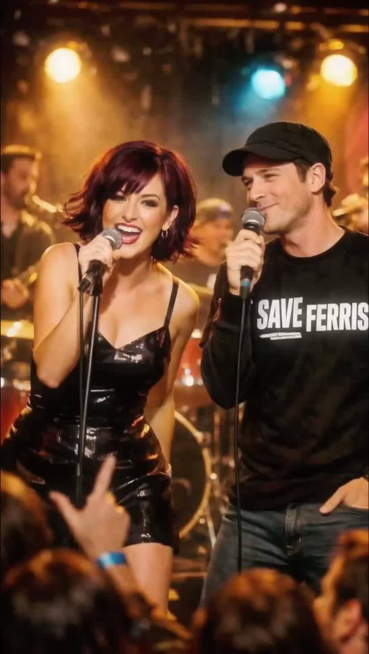 Female–male duet, high-energy 90s SoCal ska-brass party track at a fast tempo (170–175 BPM) with a raw, live band feel and nonstop forward motion, Female vocalist leads in a comfortable mid-range alto with clipped, rhythm-first, conversational phrasing—confident, sly, playful, Male vocalist matches her mid-range register with dry, quick responses landing on or just behind the beat, Verses and pre-choruses trade flirt-forward banter; choruses are sung together in unison, melodic and chantable, Instrumentation drives the chaos: tight live drums with aggressive fills, flams, and false dropouts that snap back in, nonstop upstroke ska guitar skanking through stops, walking funk bass pushing momentum, and explosive brass (trumpet, trombone, sax) Extra percussion builds late sections, exploding into a wild, stacked final chorus