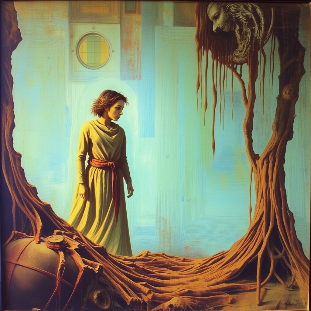 Cinematic alt-goth ritualistic anthemic tense verses airy layered vocals, Bizarre epic expansion erupting with haunting wide vocal harmonies spooky dynamic percussion and distant tremolo stripped-back minimal pulsing synth droning bass atmospheric electropop darkwave dreamcore folk fusion EDM with subtle industrial elements