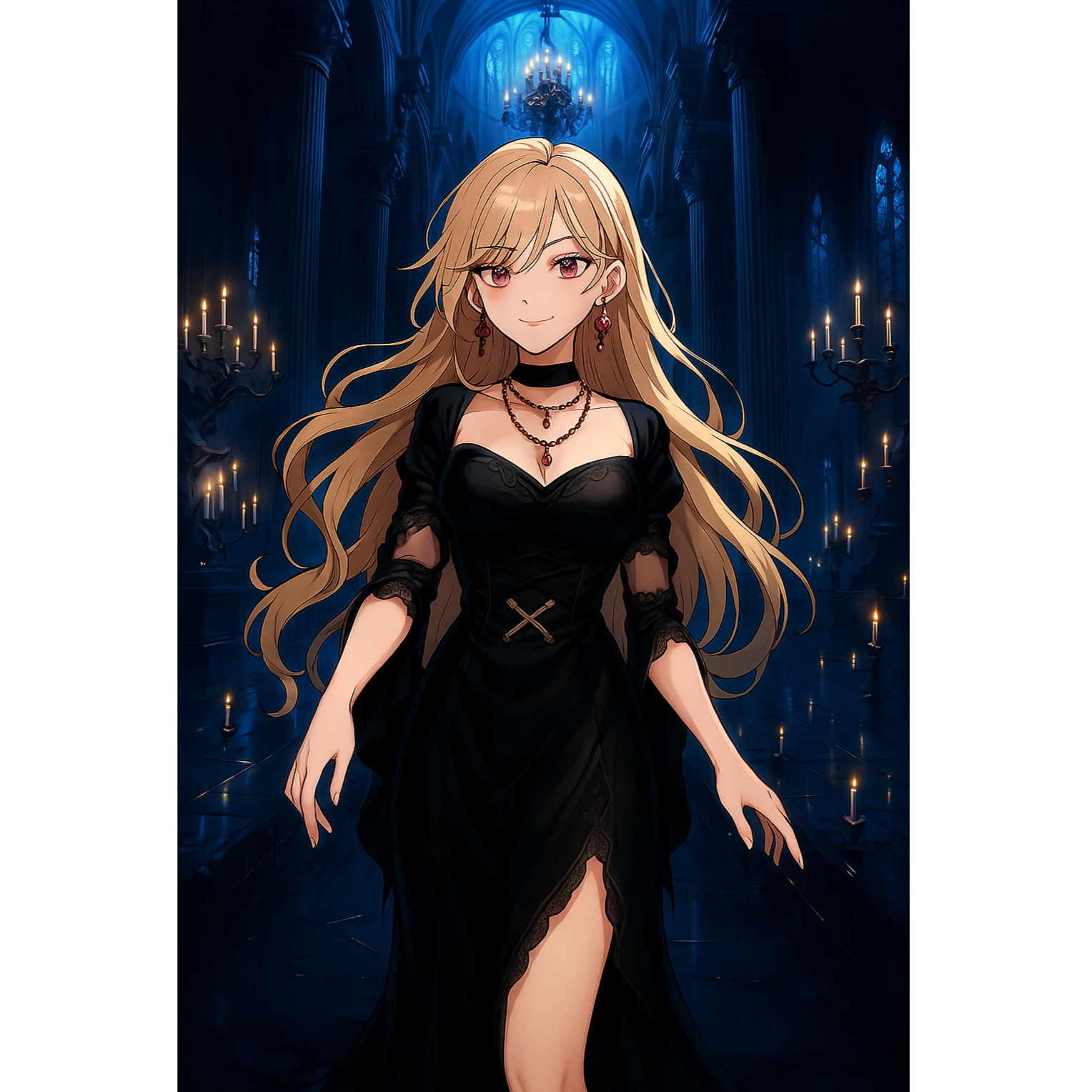 An opulent and decadent fusion of Gothic Trap Opera and cinematic Baroque Pop, with a dark, sensual, and theatrical atmosphere, The production creates a vast, sacred space by blending a haunting cathedral pipe organ and ghostly Gregorian choirs with the raw, physical power of a deep, distorted 808 sub-bass and crisp, syncopated trap hi-hats, The arrangement is a dynamic journey, with verses built on whispered intimacy and shimmering darkwave synth layers, swelling into a dramatic, romantic pre-chorus with soaring orchestral strings, The chorus explodes into a lush, powerful trap rhythm that feels both sacred and profane, The lead vocal is a whispered, sensual, and breathy female delivery that feels both seductive and dangerous, like a succubus in a confessional, The overall mood is a theatrical and atmospheric dark romance, balancing mystique, desire, and raw power, This is a masterpiece