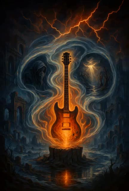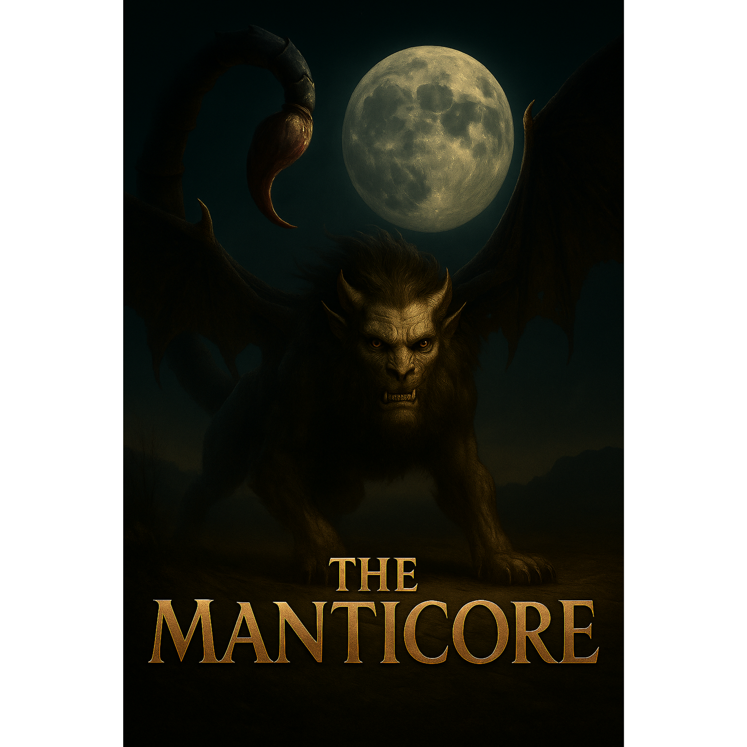 A fusion of 1980s animated theme-song bravado, space-Western grit, and ancient Indian mythic textures, this piece tells the legend of the manticore through the eyes of a haunted narrator, mixing frontier-style ballad storytelling with bold, chant-like choruses inspired by action cartoons of the 80's, Eastern elements emerge in the rhythmic layering and melodic phrasing, with echoes of Indian classical motifs, drone-inspired harmonics, and percussive textures like tabla and dhol underscoring the mysticism of the beast’s origin, the result is a genre-bending mythic ballad that feels both ancient and cosmic, heroic and horrifying