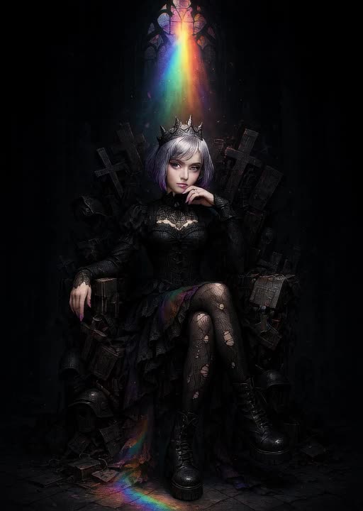 [Japanese rock female lead singer, low but energetic voice of alcohol and cigarettes, with smooth vibrato], [Dark Gangster Hip-Hop × Femme Fatale Queen × Glitch Metal Effect + Taiwan Folk Temple Fair], [BPM: 95], Gangster Glitch Metal Core, full of emotions: cold + cruel + provocative + dark and ruthless, smooth dynamic crescendo, strong chorus deep and powerful, electronic synthesizer enhances the emotional drive of dynamic rhythm, strong bass line and hi-hat, strong and weird emotional storm, full of explosive power