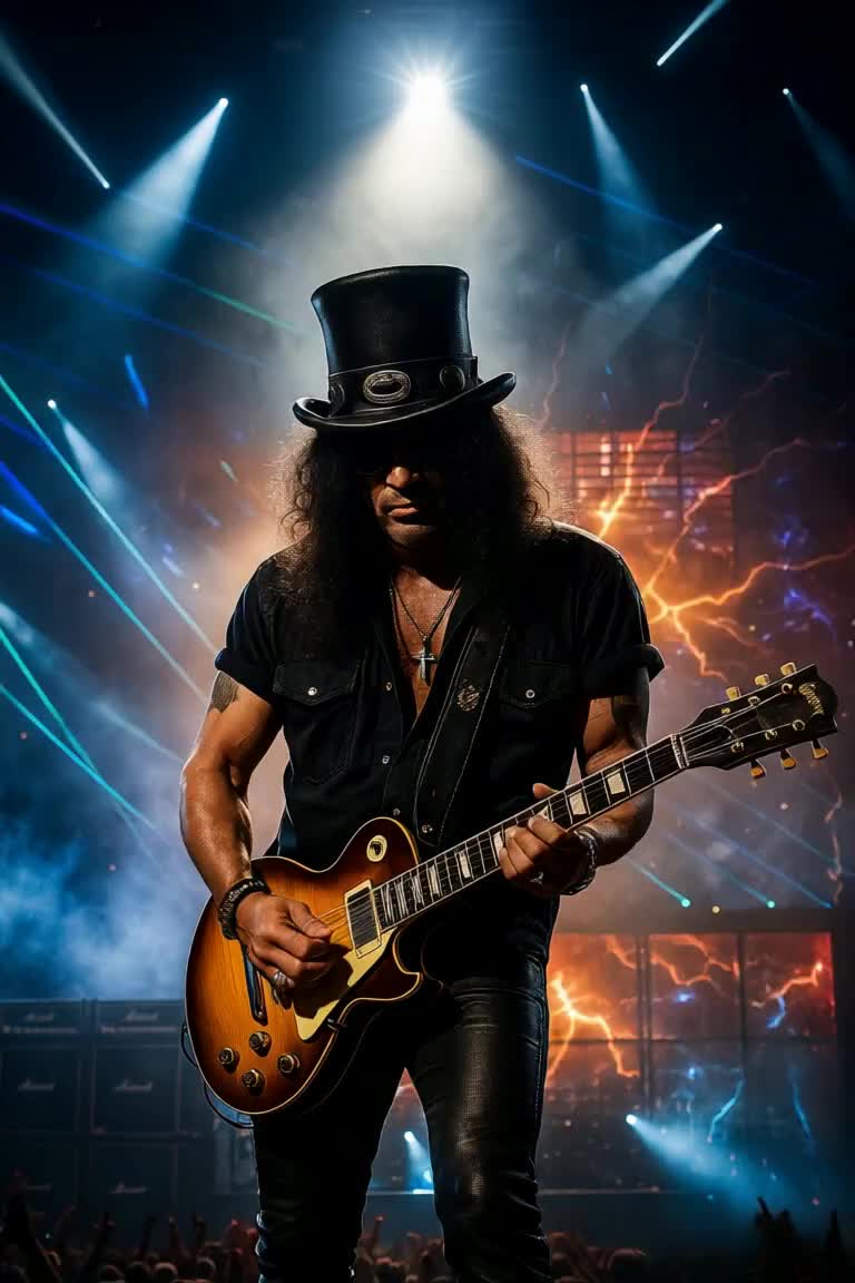 Man With The Magic Hat, a gritty, groovy 90s hard rock track performed in a stadium before a huge live crowd, It features a heavy, overdriven, wah-tinged blues-rock Main Riff (G/E minor, 90-100 BPM), the virtuously skilled guitar is front and center, which underpins the entire song, Vocals are raw, mid-range rasp, commanding and iconic, delivered confidently, The song is guitar-driven, highlighted by a long, epic solo with wailing bends, fast blues runs, and raw tone, Dynamics include a tension-building groove section, a powerful bridge, and a drum showcase escalating into a dramatic guitar re-entry that explodes into the final chorus, The heavy Main Riff fades out with feedback, keep the song under 05:00 minutes length