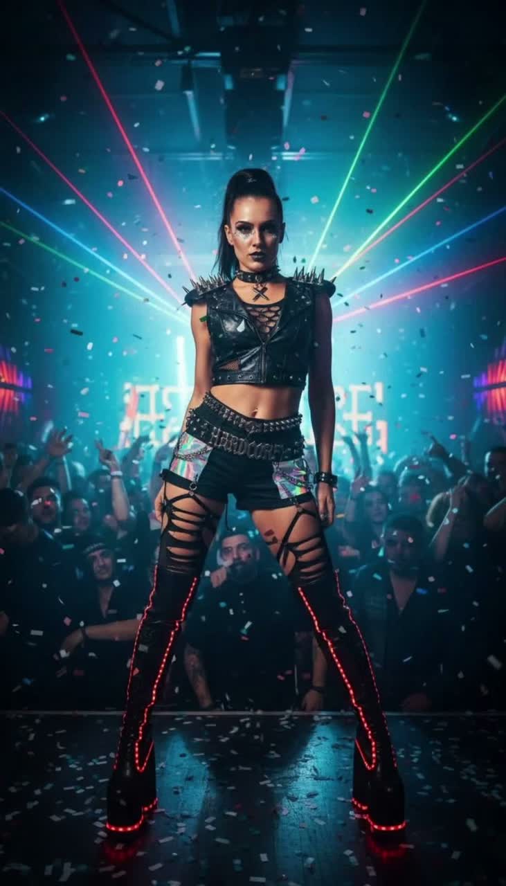 Festival Harddance, HandsUp Style, 150 BPM, gritty female vocals, Saturated Kicks, Emotional Trance Melodies, Bass Boosted, Arpeggiated Bliss, Melodic Dominance, Atmospheric Breakdowns, Rich Harmonic Content, Heavy Subbass, Modern Production, Crystal Clear, wide stereo field, subtle synth panning